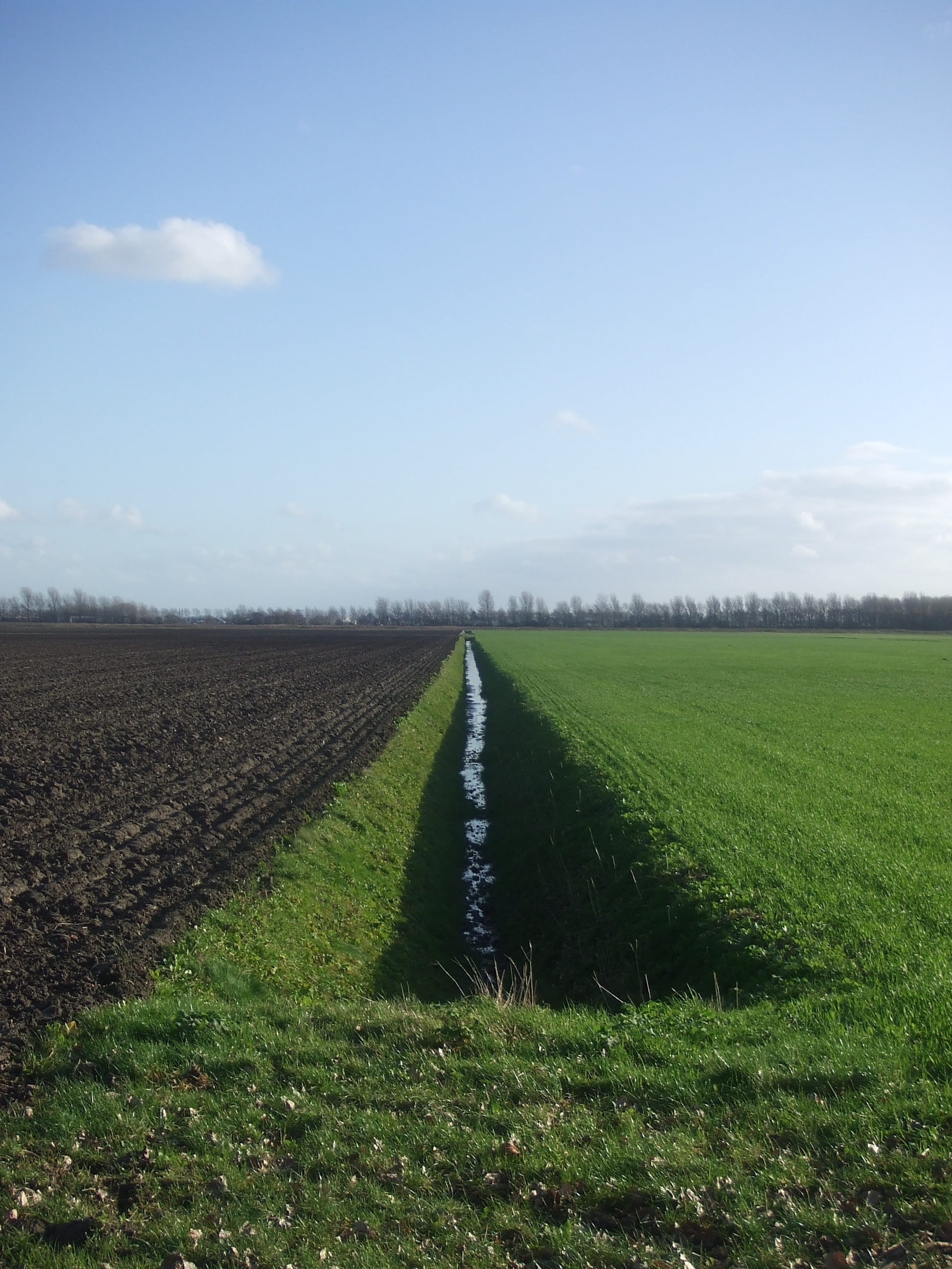 Het is zondagmiddag en eind november. Tussen twee regenfronten door schijnt de zon en is het veertien graden. Zwager Willem en ik lopen de ANWB Olmenhorstroute en wandelen onder meer door de appelgaard van landgoed Olmenhorst. Met een windkracht vijf tegen op de Hoofdweg langs de Hoofdvaart bij Abbenes krijgen we het zelfs warm. De GPS geeft aan -4 meter onder zeeniveau. Even verderop is de Kaagbaan van Schiphol. Door de wind heen horen we het geluid van opstijgende vliegtuigen en krijgen we een neiging tot vliegtuigspotting. Het landschap van aardappel-, suikerbiet- en uienvelden in de Haarlemmermeer is groen of kleizwart, zoals het hoort in de herfst.