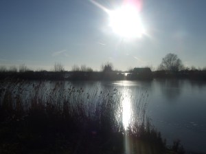 Het nieuwe jaar begonnen met een leerzame wandeling langs de Reeuwijkse Plassen en door het Reeuwijkse Hout. De ANWB Wandelroute Reeuwijkse Hout beginnen we op deze nieuwjaarsdag de Oude Weg in Reeuwijk. Het is nul graden, maar de gevoelstemperatuur enige graden lager. Links van de Kooijdijk en de Zoetendijk liggen de zandwinningsplassen Broekvelden en Vettenbroek. Die zijn dertig meter diep en daardoor nog niet bevroren. Vogelaars fotograferen krakeenden. Rechts van de dijk ligt volop ijs op de Ravensberg en Klein Vogelenzang. Dit zijn ondiepe veenwinplassen en raken dus sneller bevroren. Het ziet ernaar uit dat hier binnen enkele dagen kan worden geschaatst. De karekiet en de roerdomp verblijven graag aan de oevers van de Reeuwijkse Plassen, zo lezen we. Maar of ze hier vandaag ook zijn…?? Via de Lecksdijk lopen we door het Reeuwijkse Hout en missen we het kunstwerk van “Is someone out there kavel 18”, net als de juiste afslag in het bos. We wandelen langer dan ons lief is langs de A12. De Camping aan de Oude Weg is helaas dicht. Dus die warme bak koffie drinken wel thuis.