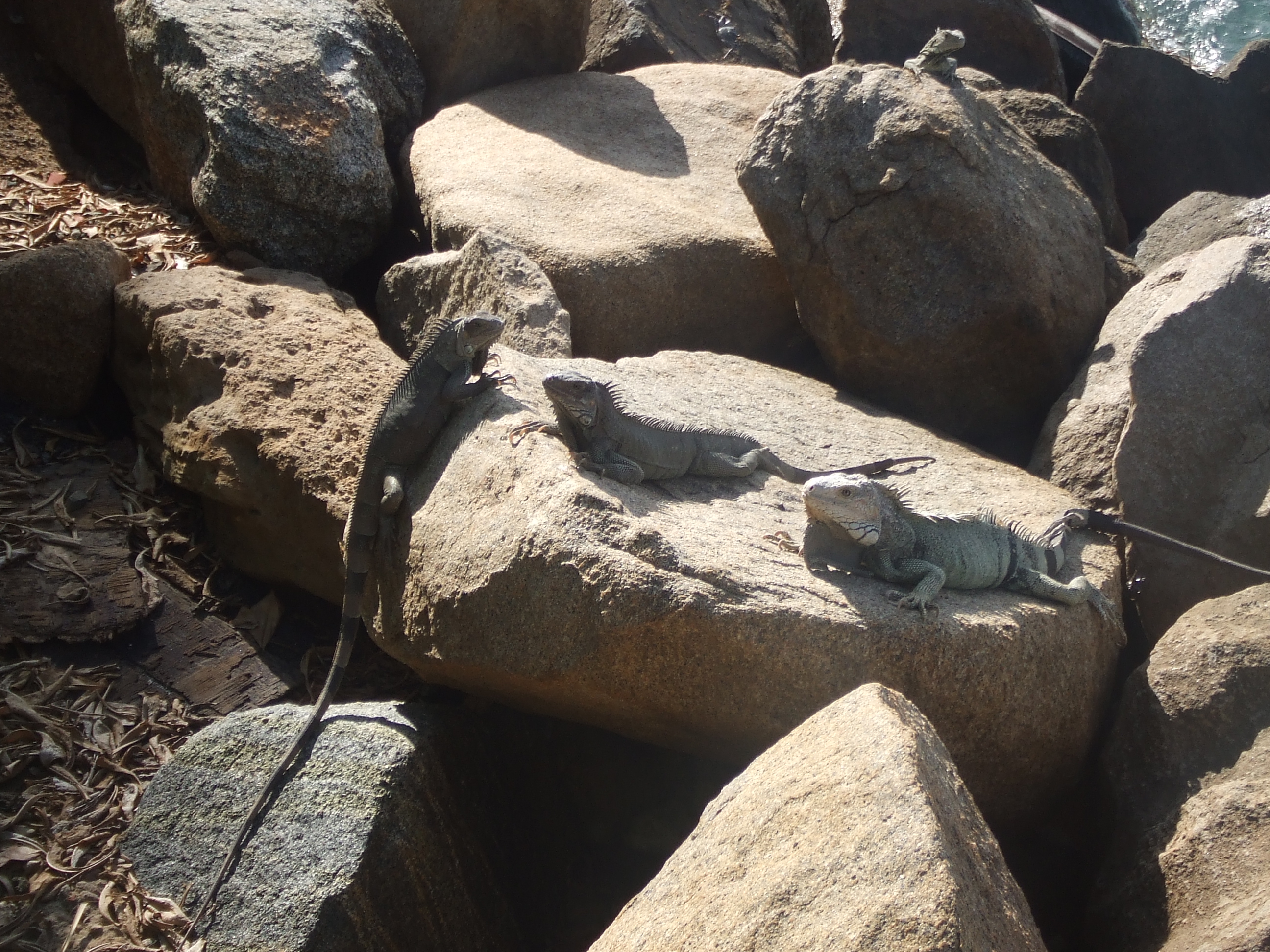 De Arubaanse hoofdstad Oranjestad en het noordelijker gelegen Palm Beach doen in veel opzichten denken aan een Amerikaans pretpark of een gokstad. Het heeft zelfs iets weg van Disney World. Veel casino’s, een Starbucks (tegenover het Arubaanse parlementsgebouw), Shopping Malls, Amerikaanse cruiseschepen en ontelbare steakhouses zoals Driftwood en Gaucho’s (waar is geen Gaucho?) etc. etc. Op de rotsen in de branding, achter de jachthaven en tussen het Renaissance hotel en het casino in, is er voor de oplettende toerist nog een extra bezienswaardigheid. Steek vijf seconden je hoofd over de heg en je ziet – op enkele meters afstand- tientallen leguanen op de rotsen. Een prachtig gezicht.