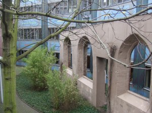 restanten van de oude Dominicaanse Kloosterkerk die in 1690 door een ontploffing van het kruithuis bijna geheel werd vernietigd. Door de ontdekking van de muren werd het gebouw van de Rekenkamer iets omgelegd. De muur staat op slechts enkele meters van de ramen. Een leerzame middag. Het had wel ietsje warmer kunnen zijn. De Haagse terrassen zijn klaar voor de lente ….die maar niet komt.