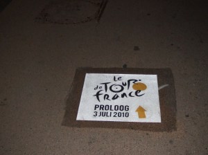 Nog ruim twee maanden en het is zover: Le Grand Départ ofwel de start van de Tour de France in Rotterdam. Hier en daar is in Rotterdam te merken dat het moment van de proloog steeds dichterbij komt. Vanochtend vroeg zag ik een taxi in Bolletjes Trui kleuren voorbij rijden en in de straten langs het parcours van de proloog liggen zogenaamde “proloog” tegels.