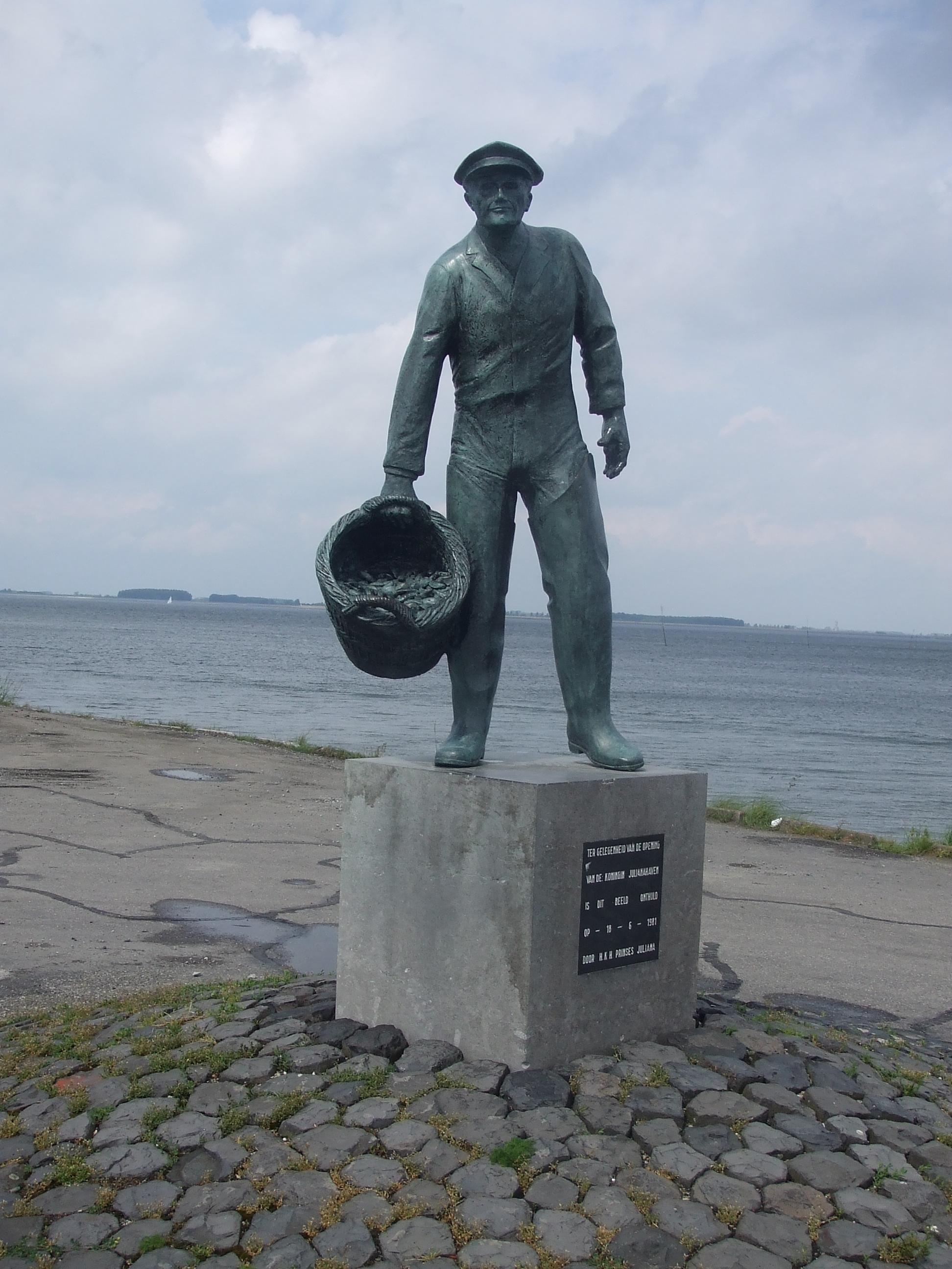 Standbeeld van de mosselvisser bij de Julianahaven in Yerseke. In 1982 onthuld door Prinses Juliana (foto: René Hoeflaak)