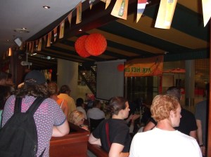 In een bont en internationaal gezelschap van onder andere Amerikaanse, Japanse, Bosnische en vooral veel Nederlanderse reizigers kijken we naar de aftrap. De spanning is te snijden. Naast mij zit Elgun uit Azerbeidjan. Zijn vlucht naar Bakoe vertrekt om 23.30 uur. Kansen zijn er nauwelijks in de finale. Al vrij snel bespreken we dan ook de stand van zaken in het Azerbeidzjaanse voetbal. We weten allebei geen Azerbeidsjaanse speler te noemen in de Nederlandse competitie. Andersom ook niet. Bakoe telt enkele clubs. Volgens Elgun, zal Azerbeidzjan nooit zo ver komen als Nederland. De bekendste speler van het land is Aslan Kerimov (75 caps). Elgun moet zijn vliegtuig halen. De verlenging is begonnen. De afloop is bekend. Als wij, een illusie armer, in de trein stappen, is Elgun op weg naar Bakoe en zijn de vragen over het Azerbeidzjaanse voetbal onbeantwoord. Tot vandaag. Leve de zoekmachine. In de Nederlandse competitie speelt één Azerbeidzjaan; Vagif Javadov (25 mei 1989) bij FC Twente. We gaan hem volgen. Rob Reekers is assistent trainer bij Neftchi Bakoe. FC Bakoe, Khazar Lenkoran en FK Qarabaq spelen voorrondes Europa League en Inter Bakoe voorronde Champions League. Morgen speelt Inter Bakoe thuis tegen Lech Poznan. Zie ook: http://www.inter.az/. En dan nog een primeur; Ibrahim Kargbo verlaat Willem II en voetbalt het komend seizoen voor FK Bakoe.