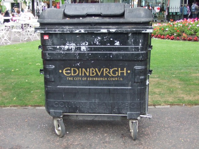 Edinburgh: Vuilcontainer in East Princes Street Garden. Edinburgh is een schone stad. (foto: René Hoeflaak)
