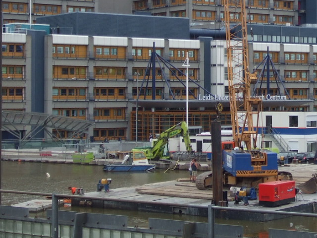Vrijwel iedere dag stop ik/mijn trein twee keer twee minuten in Leiden. De voortgang van de bouw van ROC Leiden Zeezijde is vanaf perron acht en vanuit de trein goed te volgen. Vandaag had ik een afspraak in Leiden en nam ik de tijd om de bouwplaats wat langer te bekijken. De damwanden zijn geslagen en het Leids Medisch Universitair Centrum (LUMC) ligt nu tijdelijk aan een vijver. De timing is goed.. of juist niet. Want met een paar nachten vorst had Leiden een tijdelijke ijsbaan gehad. De bouw ROC Zeezijde (12 etages) is een project van Visser en Smit Bouw BV in Papendrecht en zal in maart 2013 klaar zijn. Zie ook: www.vernieuwendlereninleiden.nl/.