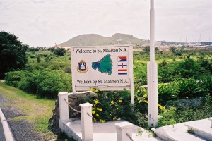 In 2003 dus wandelde ik van Sint-Philipsburg in Sint-Maarten naar Marigot in St. Martin. Voor de Amerikanen in het Great Bay Beachhotel een exercitie die veel “greats” en “supers” losmaakten, maar voor mij niet meer dan een “verkennende” dagwandeling om het eiland goed te verkennen. Net nadat ik bij Cole Bay in een haarspeldbocht bijna door een auto was geschept en ik mijn broek, bij het dekking zoeken, openscheurde aan een vangrail zag ik de grenspaal tussen Sint-Maarten en St. Martin voor mij opdoemen.