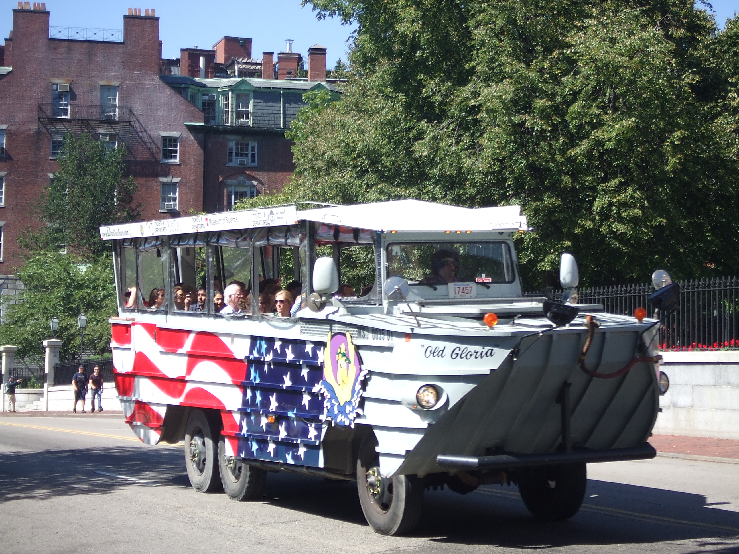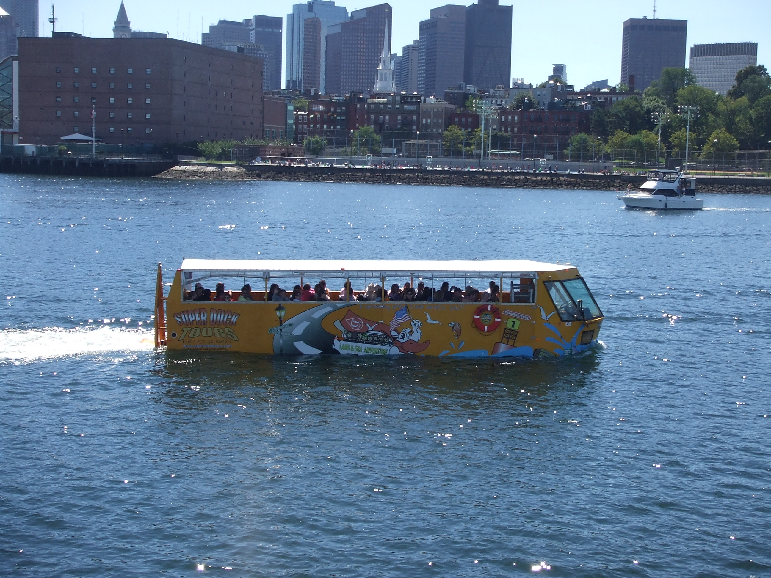 In mei berichtte ik eerder over de Splashtour in Rotterdam: Zie: https://renehoeflaak.wordpress.com/2010/05/17/splashtour-rotterdam/. Ik was de Splashtour (ervaring) al bijna vergeten totdat ik in Boston de ene Ducktourwagen na de andere voorbij zie rijden en varen. Idem voor wat betreft de Splashtourbussen. In Boston noemen ze dit Ducktour of Superducktour. What’s in a name? Het zit hem waarscijnlijk in de Rotterdamse details maar hoe moet ik het Unique Selling Point van de Rotterdamse Splashtours dan interpreteren? Zeker als ik met een beetje “Googelen” ook Splash- en Ducktours in bijvoorbeeld Australië tegenkom. Op de site van de Rotterdamse Splashtours lees ik immers: “De Splashtours-amfibiebus is uniek: het is het enige voertuig ter wereld dat volledig gecertificeerd is en als volwaardige bus de weg op en als zeewaardig schip het water in mag.”