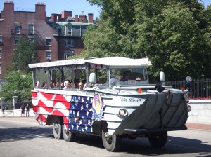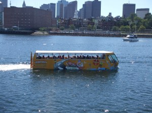 Boston, vorige week: De Superduck bus vaart door de haven. Waar hebben we dat meer gezien? (foto: René Hoeflaak)