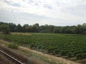 Vrijdag 17 september 2010: Een wijnveld langs het traject Bordeaux-Nimes (foto: René Hoeflaak)