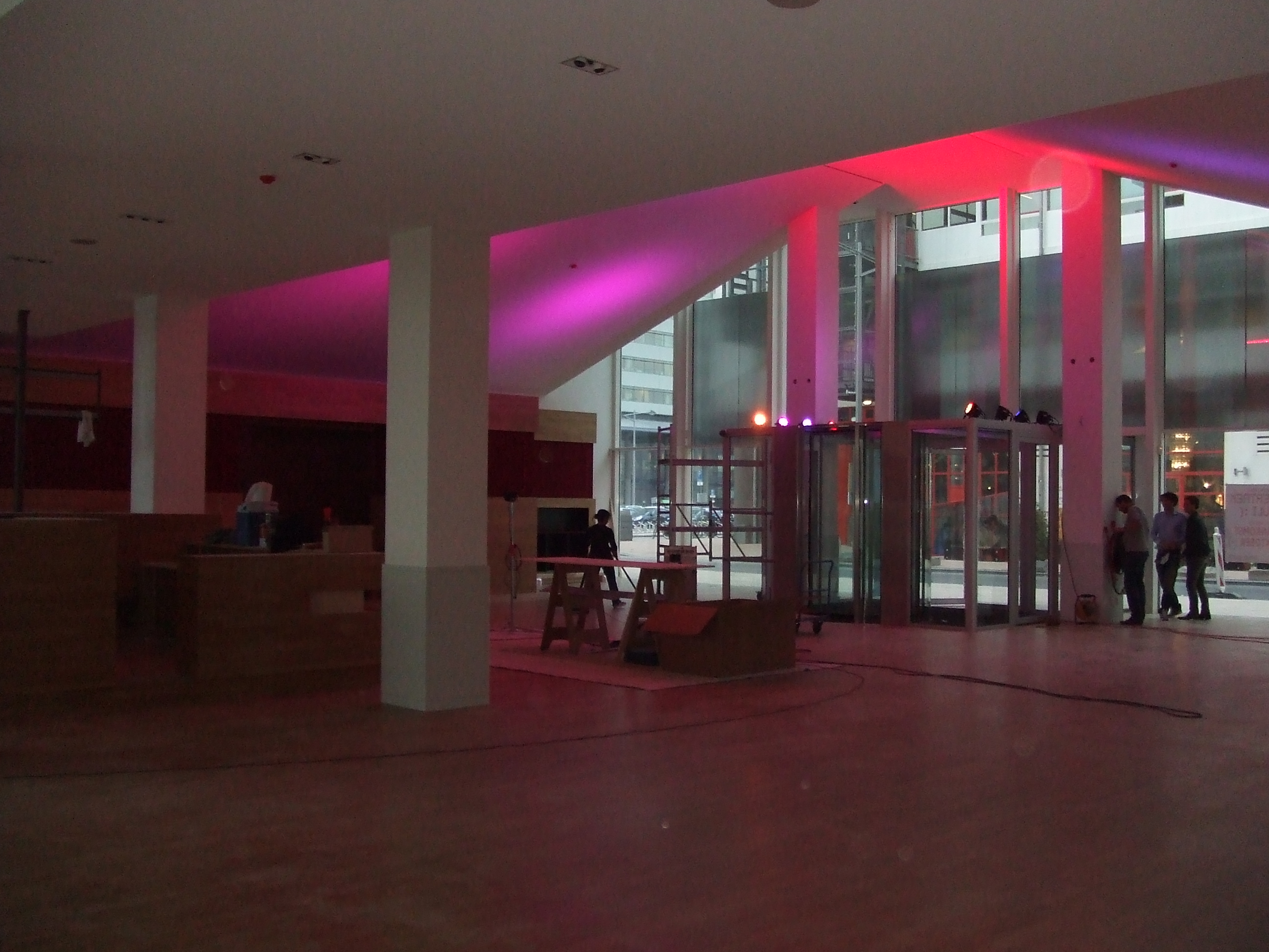De Lantaren staat dan pas echt in de schijnwerpers. Ik had gisteren het voorrecht om bij de rondleiding (gids: directeur Frans Vreeke) door het gebouw te zijn. Een week voor de oplevering en met de bouwvakkers nog over de vloer, proef je de aantrekkingskracht al. In het midden van de centrale foyer is een kassa- en onvangsteiland. Rechts het café-restaurant met terras. We nemen een kijkje in de artiestenkleedkamer, het kantoor, de filmzalen en in, naast, achter en boven de grote (muziek)zaal.