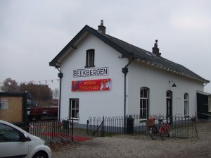 De sfeer was afwachtend maar verder prima. Zoete vissen aan de haak, houtvuur, gluhwein, chorizoworsten, kerstsokken etc. etc. Terug naar Beekbergen volgen we spontaan de borden naar het station Beekbergen. De laatste passagierstrein stopte in 1947 op het station. De laatste goederentrein in 1984.