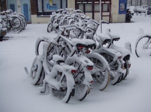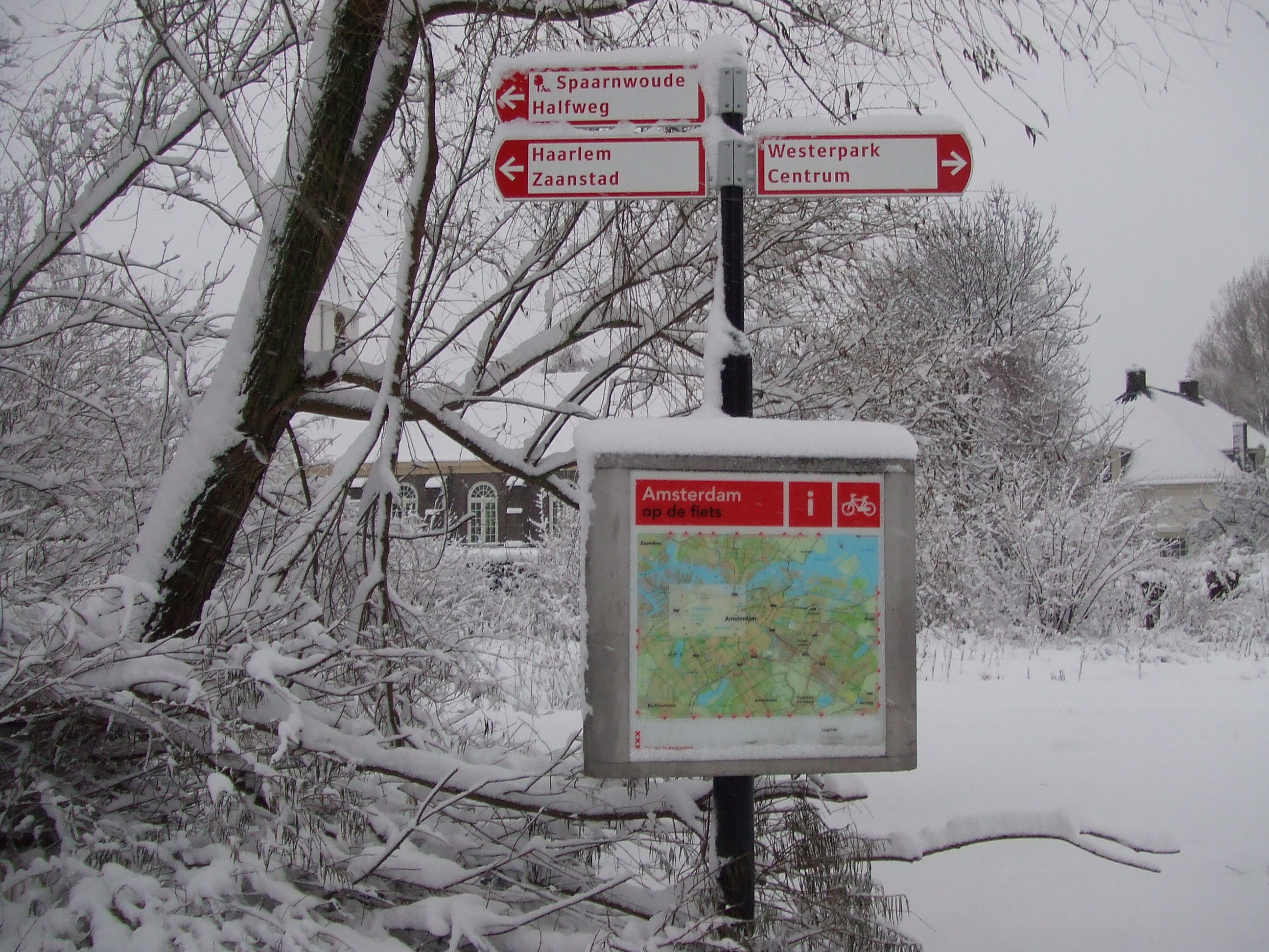 Amsterdam gistermiddag; Niet alleen het treinverkeer is ontwricht en van slag door het winterse weer (foto: René Hoeflaak)