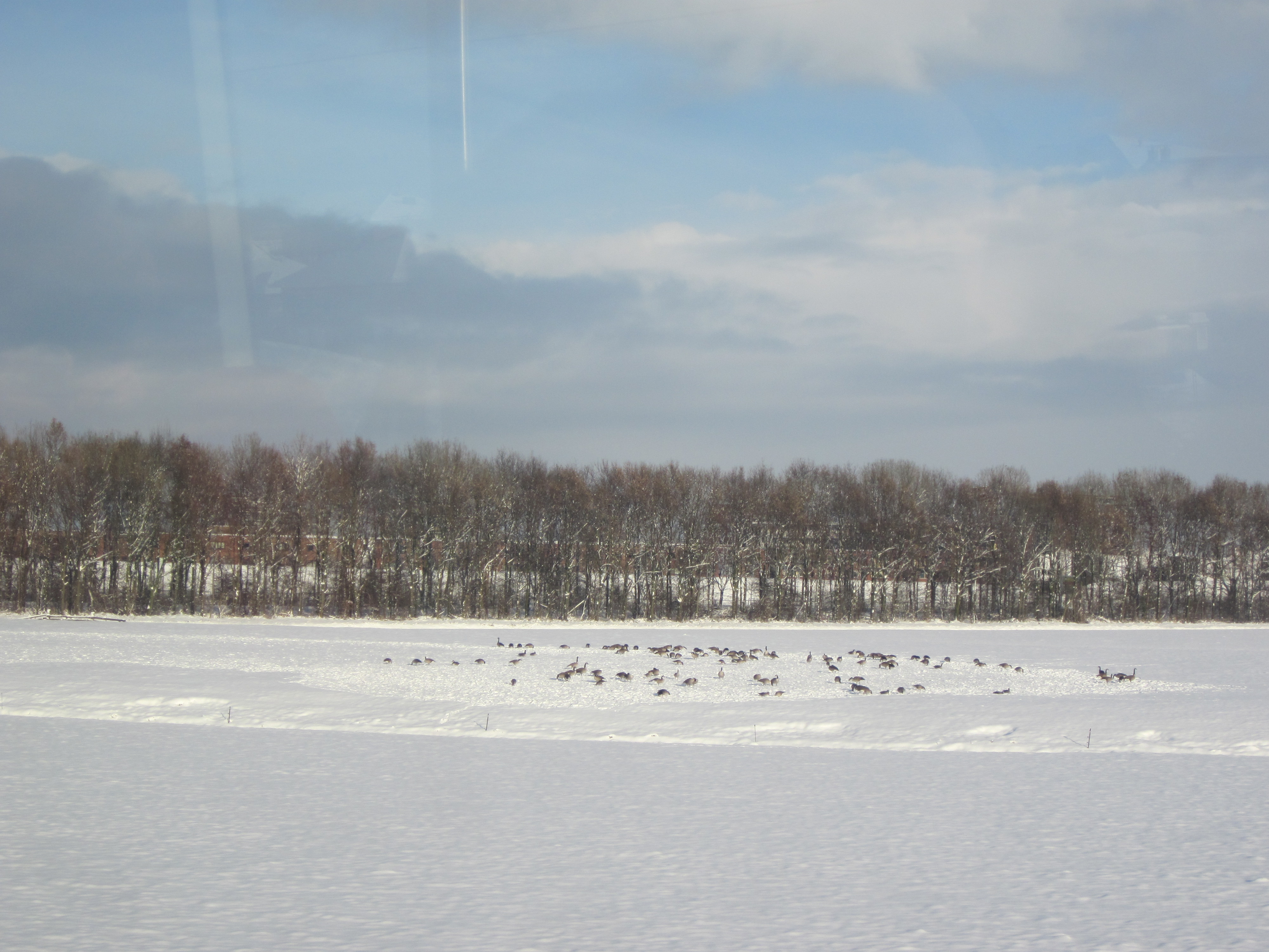 Zaterdag 18 december 2010: Ganzen bij Pijnacker, gezien vanuit lijn E van de Randstadrail (foto: René Hoeflaak)