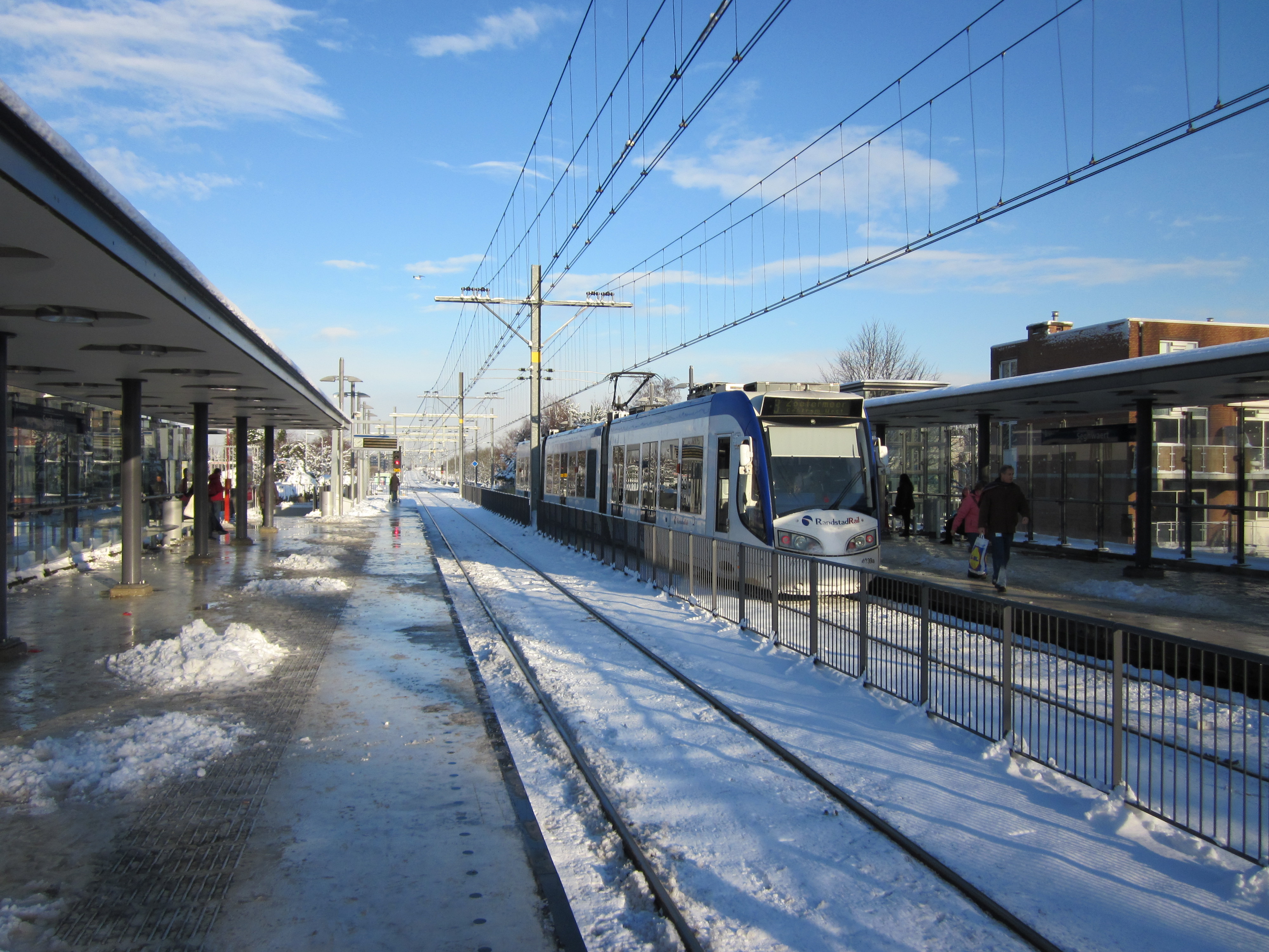 Wie trein, auto, tram, bus en vliegtuig in deze barre winterse tijden niet meer ziet zitten, denkt wellicht aan de Randstadrail. Zie ook; www.randstadrail.nl Niets is minder waar, zo bleek afgelopen middag op weg naar Zoetermeer. Ook de lightrailverbinding van de Randstadrail moet er aan geloven. De lightrail rijdt als gevolg van het winterweer onregelmatig en niet volgens de dienstregeling. Ieder nadeel heeft zijn voordeel. De winterse wachttijden bieden ons namelijk de gelegenheid station Seghwaert in Zoetermeer (als treinstation geopend in 1978) en omgeving eens goed te verkennen.