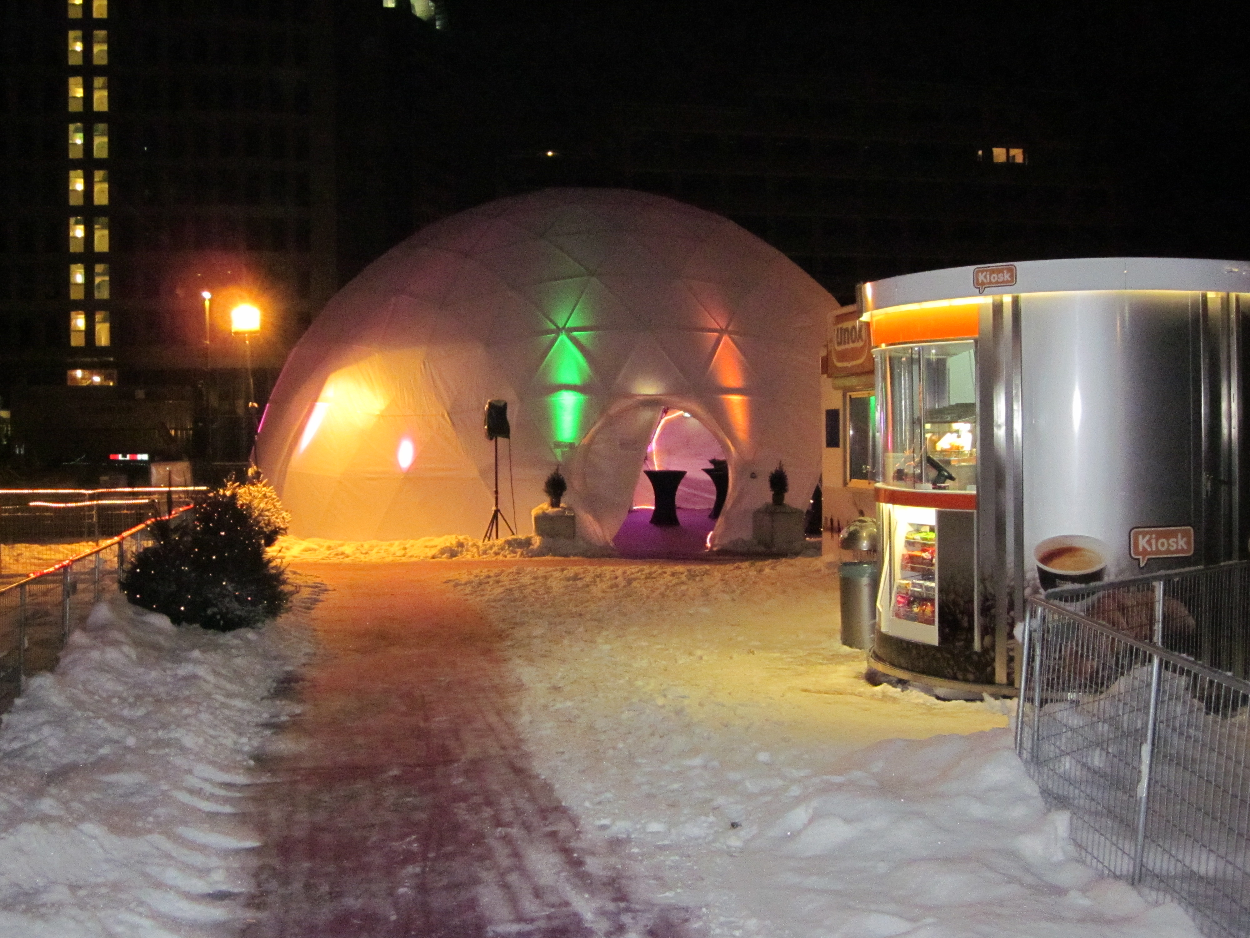 Den Haag Centraal, eerder vanavond; Bij de ingang van het station kunnen wachtende en gestrande reizigers kerstattributen kopen. Het is bovendien lekker rustig en de kachel staat aan (foto: René Hoeflaak)