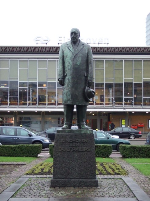Over tunnels gesproken. Dagelijks lopen tweehonderduizend mensen onder de tunnel van het station. En wellicht ook weer terug. Zoals het in Eindhoven hoort, kan geen enkele reiziger om Philips heen. Vanaf 1951 staat een niet te missen standbeeld van Anton Philips voor het station. Of is het andersom? Het huidige station is immers vijf jaar na de onthulling van het beeld gebouwd en Philips is belangrijker dan het station. Dus Philips staat niet voor het station, maar het station staat achter Philips. Let’s make things better!!!