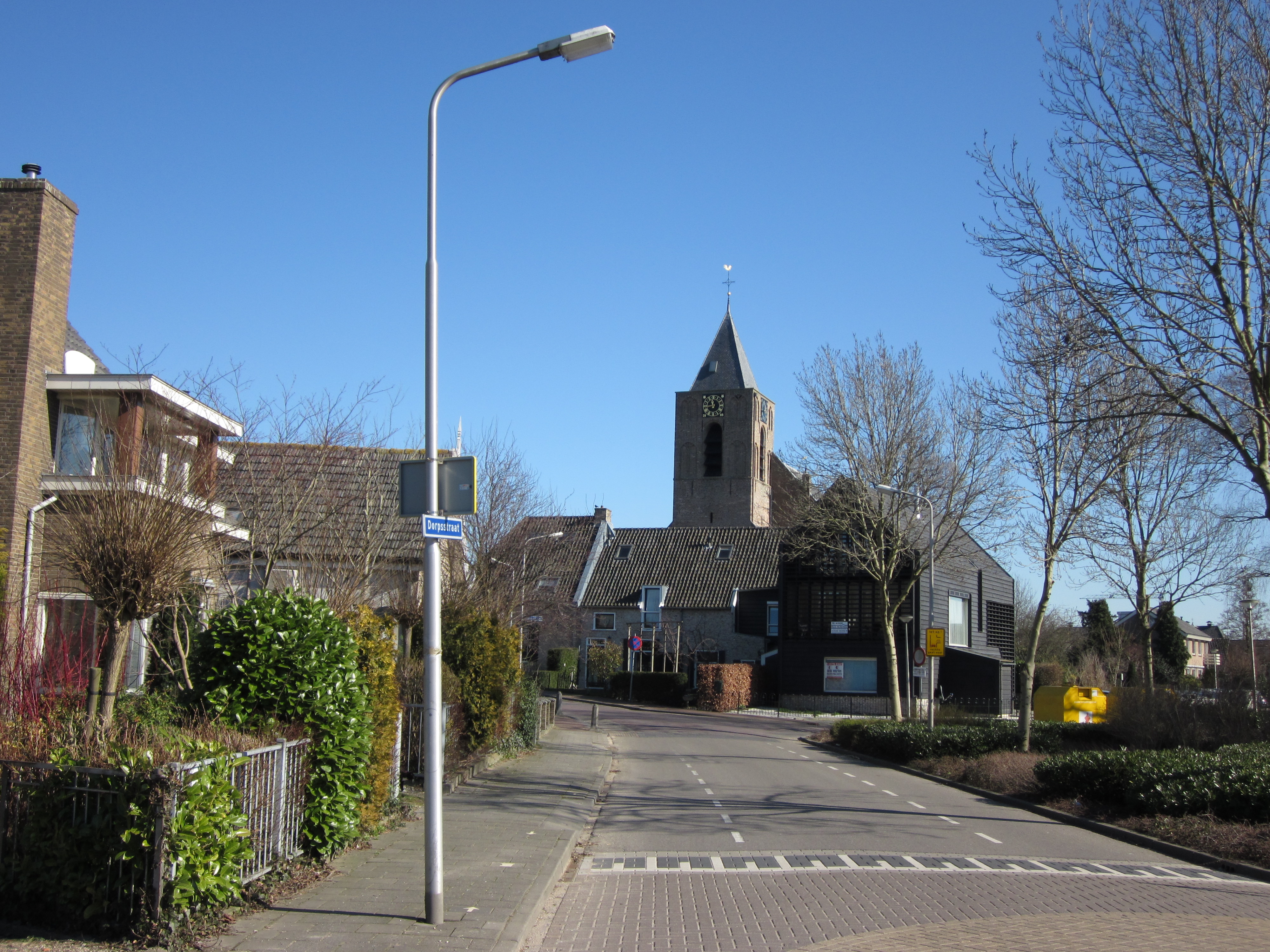 Oud-Alblas, Dorpsstraat vanochtend. Op de achtergrond, de veertiende Eeuwse NH Kerk, één van de vele Rijksmonumenten van het dorp ( (foto: René Hoeflaak)