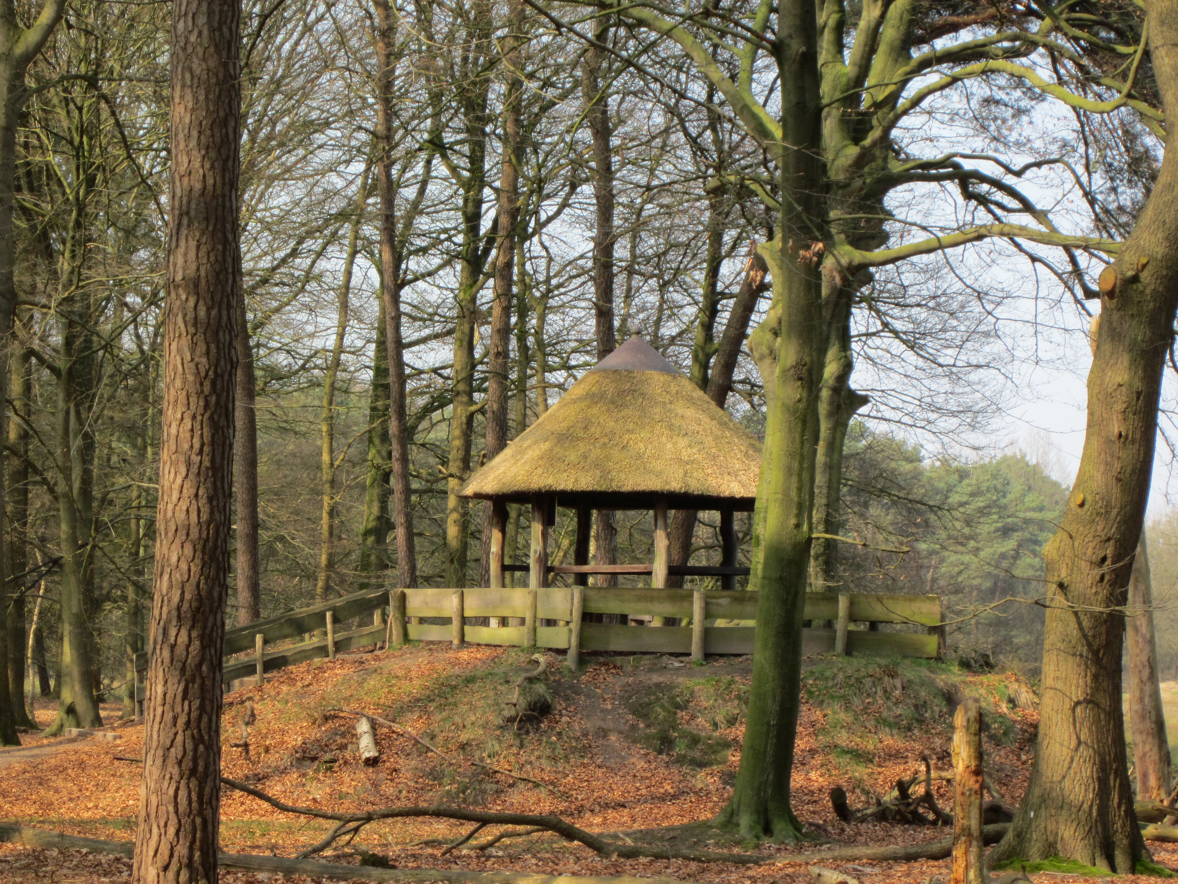 Bij landgoed De Oude Buisse Heide kijken we vanuit de theekoepel over het fraaie landschap. Net zoals dichteres Henriëtte Roland Holst dat bijna een eeuw geleden deed met onder andere haar bekende gasten en vrienden als mede dichter en mede socialist Herman Gorter en schrijver Arthur van Schendel.