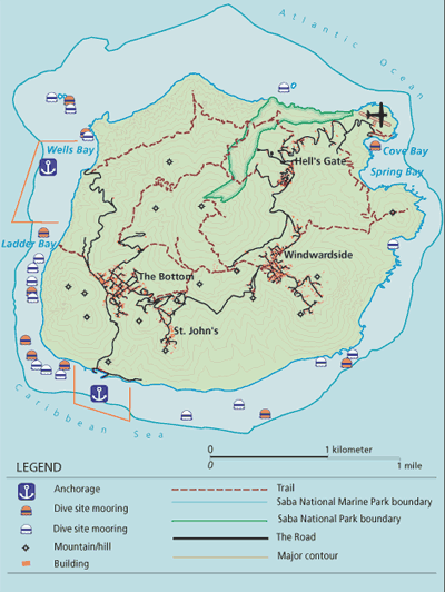 Kaart van Saba (bron; http://www.sabatourism.com)