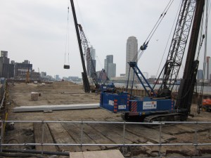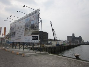 Rotterdam; bouwplaats van het ECCR, met uitzicht op de torens van de Wilhelminapier (foto: René Hoeflaak)