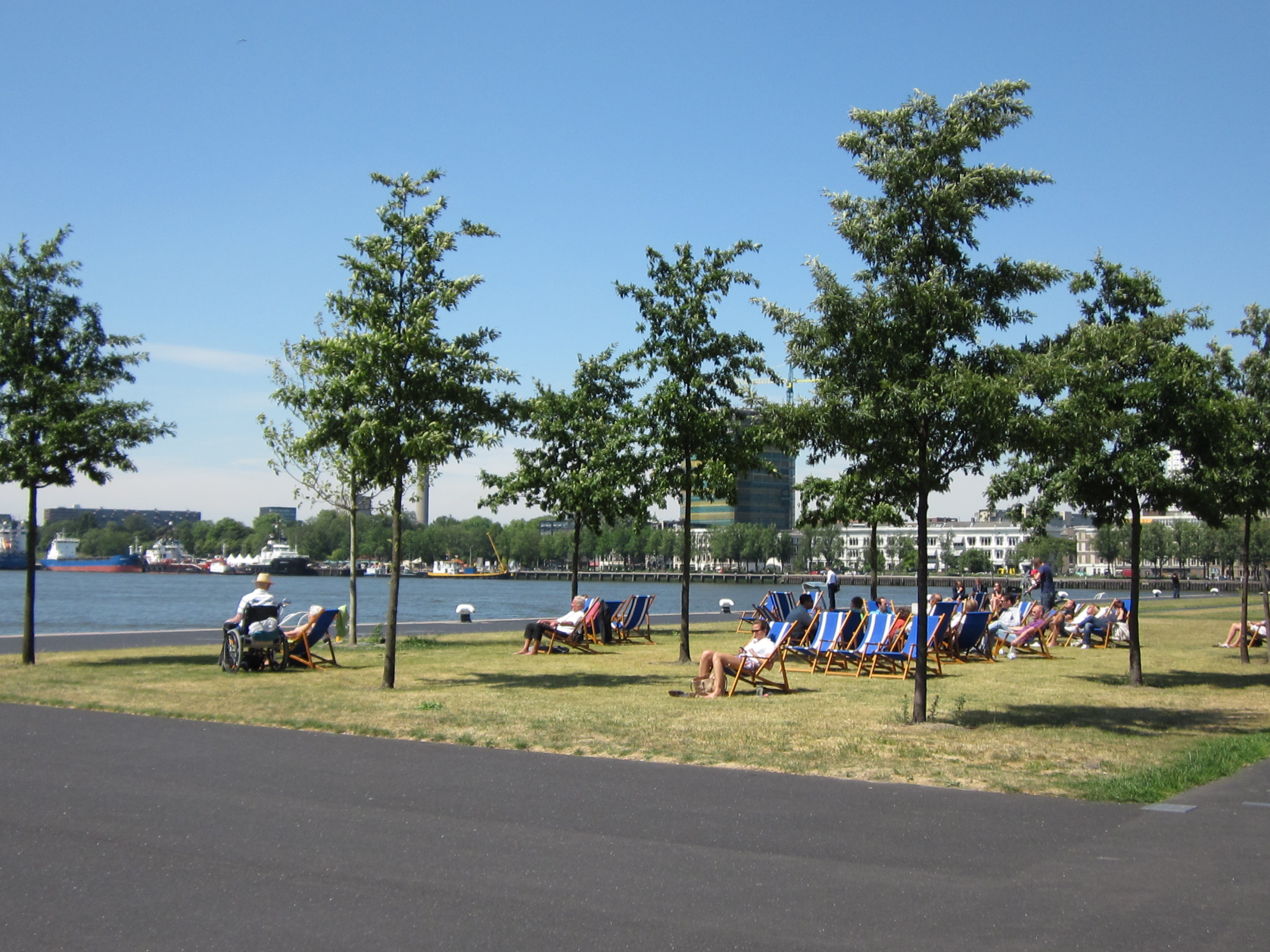 Rotterdam, vanmiddag; Tropische temperaturen op de Wilhelminapier (foto: René Hoeflaak)