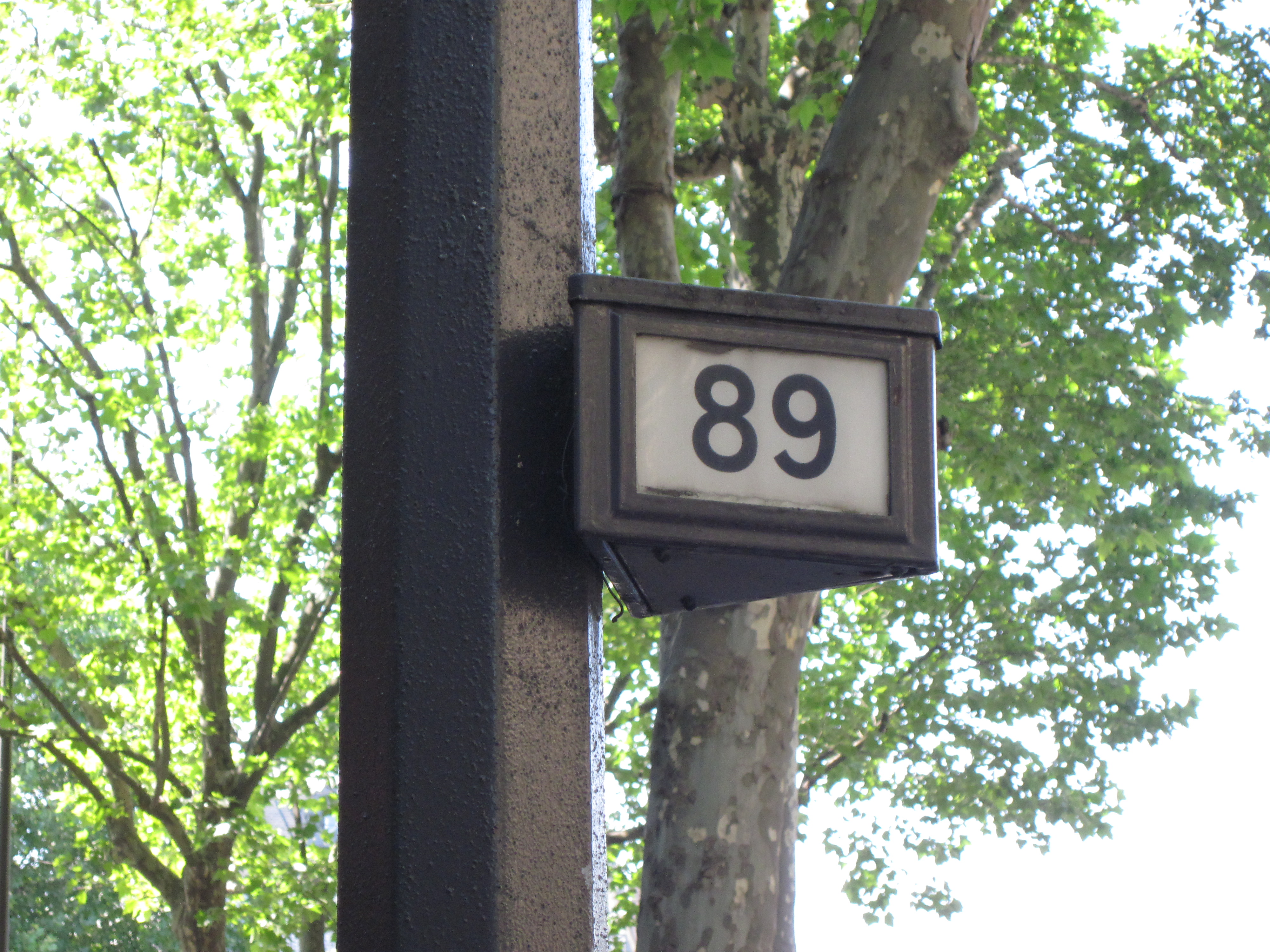 Parijs, huisnummers, ingevoerd door Napoleon, aan lantaarnpalen maken het de postbodes en bezorgdiensten makkelijker (foto: René Hoeflaak)