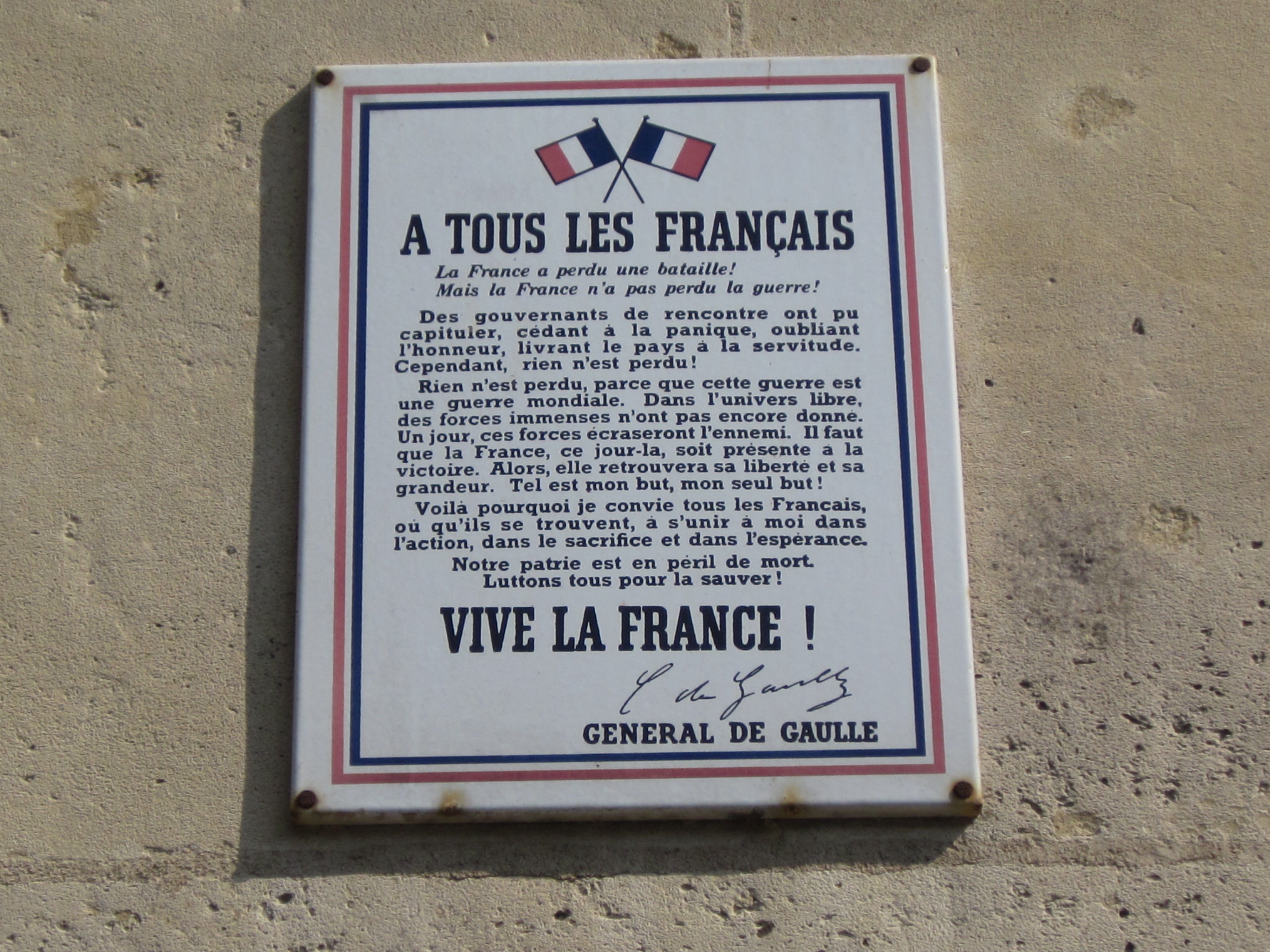 Wandelen door Parijs, is een wandeling door een geschiedenisboek. En bij iedere straat sla je een bladzijde om met stille getuigen, opvallende en minder opvallende verwijzingen naar en herinneringen aan de roerige Franse en Parijse geschiedenis. Zo stappen we dit weekend uit het honderd en één jarige metrostation Cité en sta ik op de hoek van Place Louis Lépine voor een gevelbord met de historische toespraak van Charles de Gaulle van 18 juni 1940. Hierin riep hij, vanuit Londen, de Fransen op zich te verzetten tegen de Duitsers, die enkele dagen daarvoor, op 14 juni Parijs hadden ingenomen. In de toespraak sprak hij de historische woorden dat de slag was verloren, maar nog niet de oorlog. Hij eindigde uiteraard met “Viva La France”.