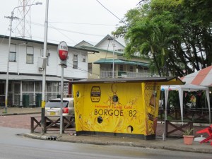 Suriname, Paramaribo, februari 2011: Bushokje met alcoholreclame bij 't Vat (foto: René Hoeflaak)