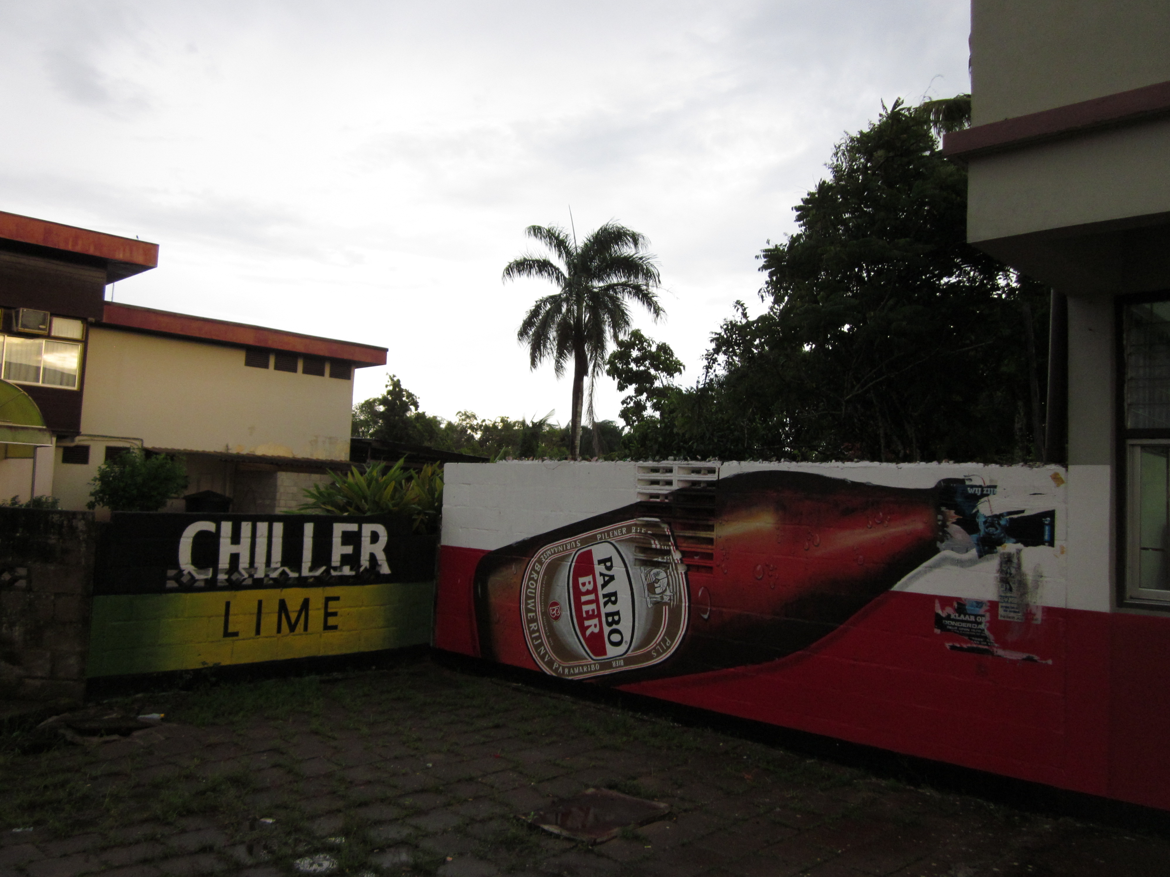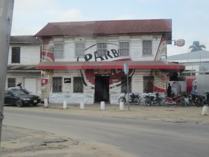 Suriname, Paramaribo, februari 2011; Café met PARBO reclame (foto: René Hoeflaak)