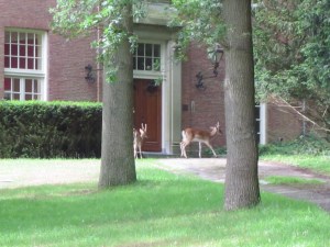 21 juni 2011: herten aan de voordeur bij koetshuis Leyduin in de bossen van Heemstede (foto: René Hoeflaak)