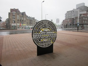 Hillelaan, Rotterdam; Kunstwerk van Luuk Bode dat herinnert aan de start van de Tour de France 2010 in Rotterdam en de deelgemeente Feijenoord (foto: René Hoeflaak)