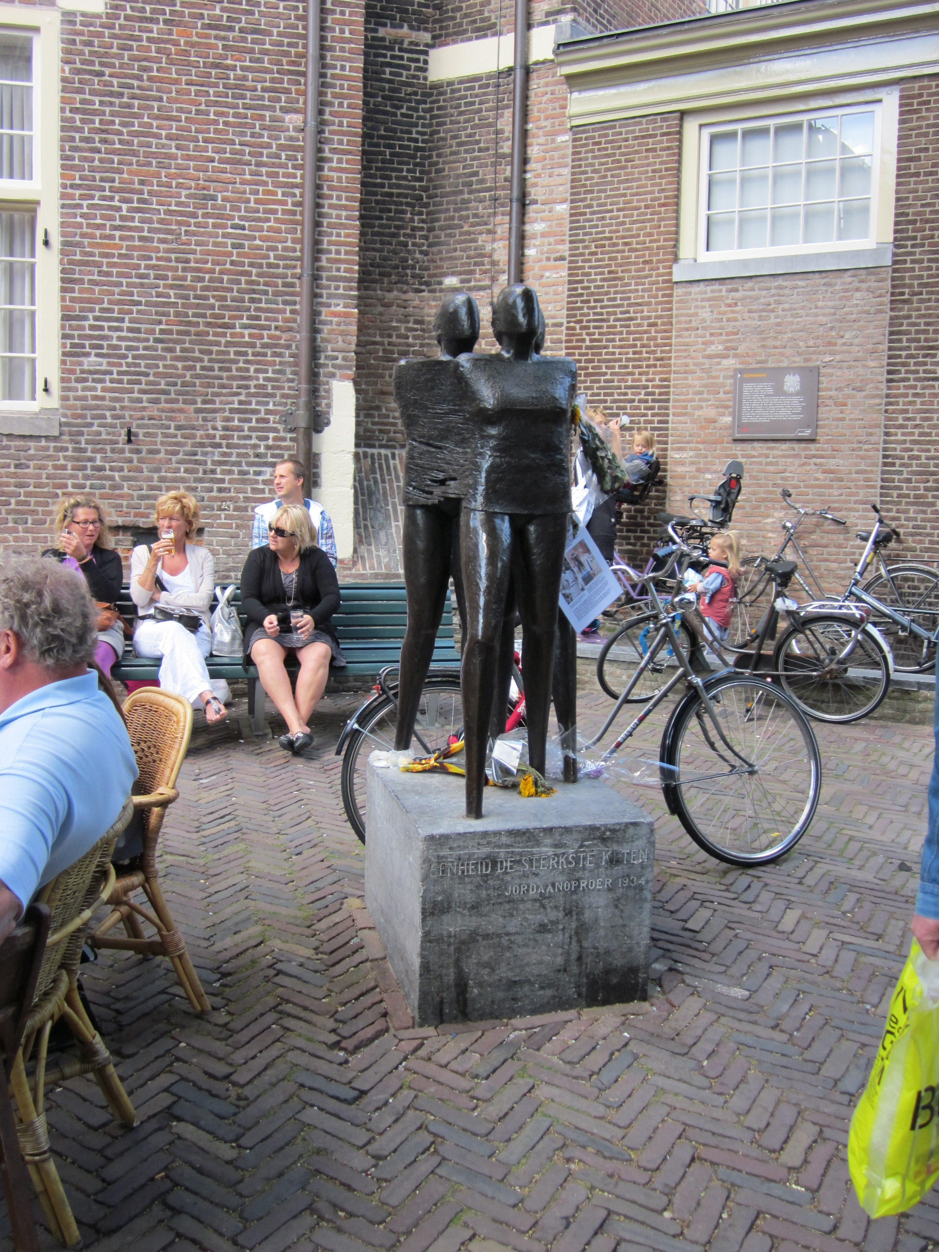 Amsterdam; Noordermarktstraat; Bier en bloemen bij het monument “Eenheid de sterkste keten” ter nagedachtenis aan de Jordaanoproer in 1934. Het monument is een kunstwerk van Sofie Hupkens (foto: René Hoeflaak)