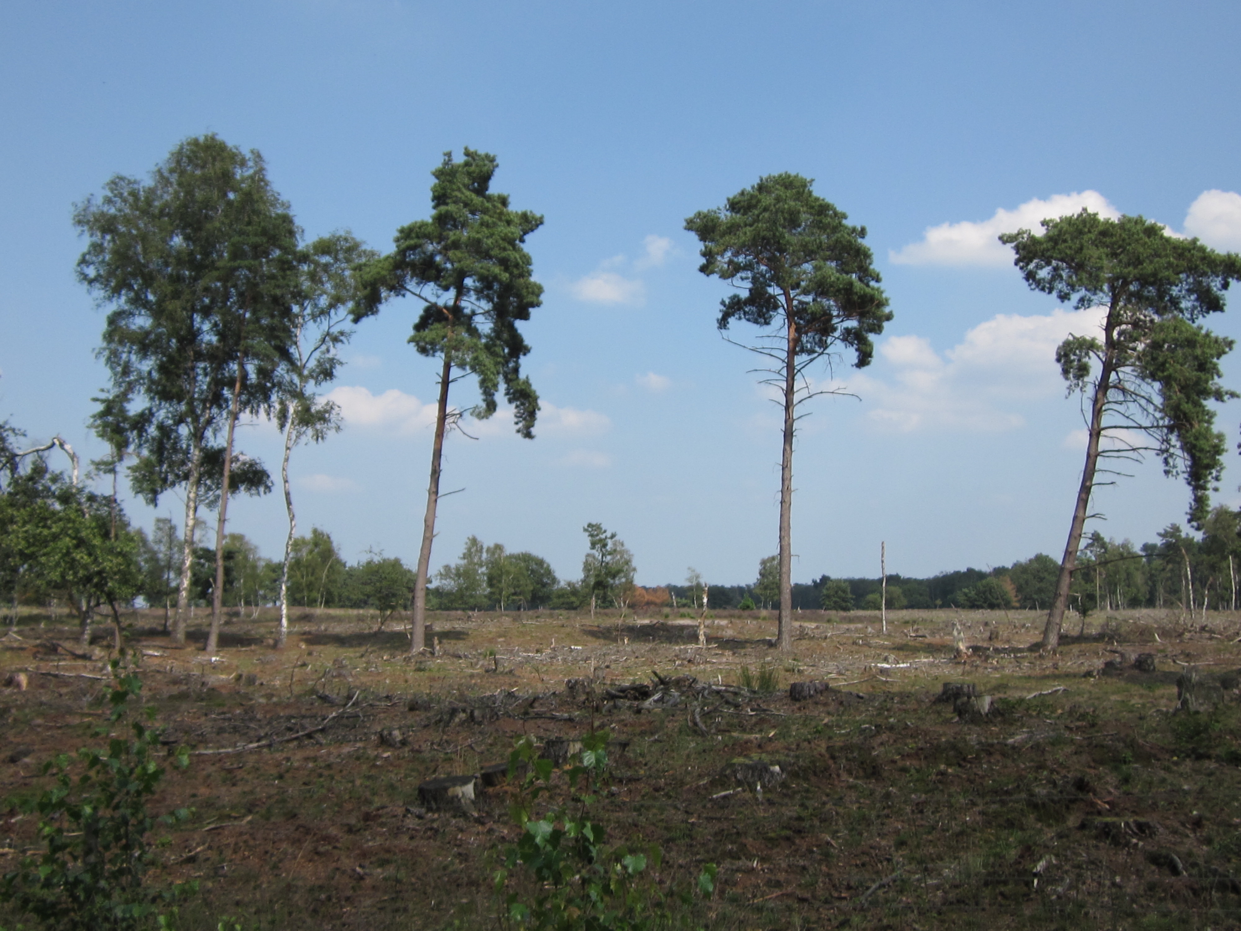Niet ver van het Herbertusbos bij Heeze zijn, dertien maanden later, de sporen van de heidebrand van 2 juli 2010 nog goed te zien (foto: René Hoeflaak)