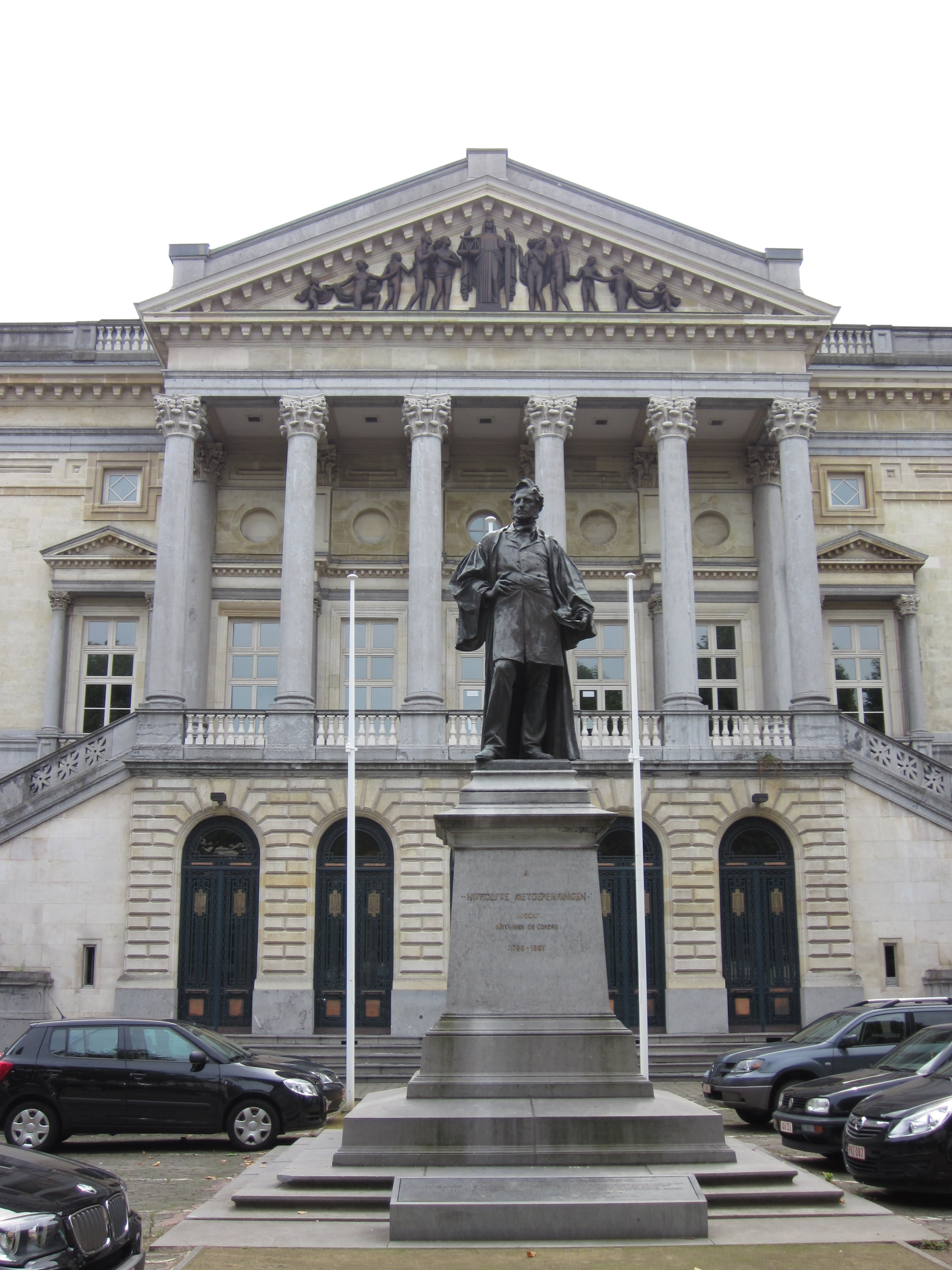 Gent, Koophandelsplein, aan de rand van centrum. Zoals zoveel Gentse horecagelegenheden zoekt ook Brasserie Midi “polyvalente medewerkers“, zo lees ik op het terrasraam. “Polyvalent” een woord dat je in Nederland niet veel zal tegenkomen op een terras of achter de bar. In Nederland zoeken we “allround” medewerkers. Dat begrijpen wij, Nederlanders, beter. Terwijl de ober van Midi mij een Gentse Tripel inschenkt en uitlegt aan welke criteria een polyvalente medewerker moet voldoen, zie ik twintig meter voor mij het bronzen beeld van Hyppolite Metdepenningen (1799-1881).