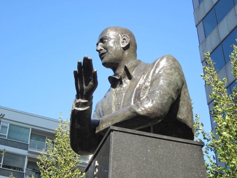Rotterdam en de recente geschiedenis: Tegenover het Schielandhuis staat het standbeeld van Pim Fortuyn, geplaatst op 6 mei 2003, een jaar na de moord op deze Rotterdamse politicus. (foto: René Hoeflaak)