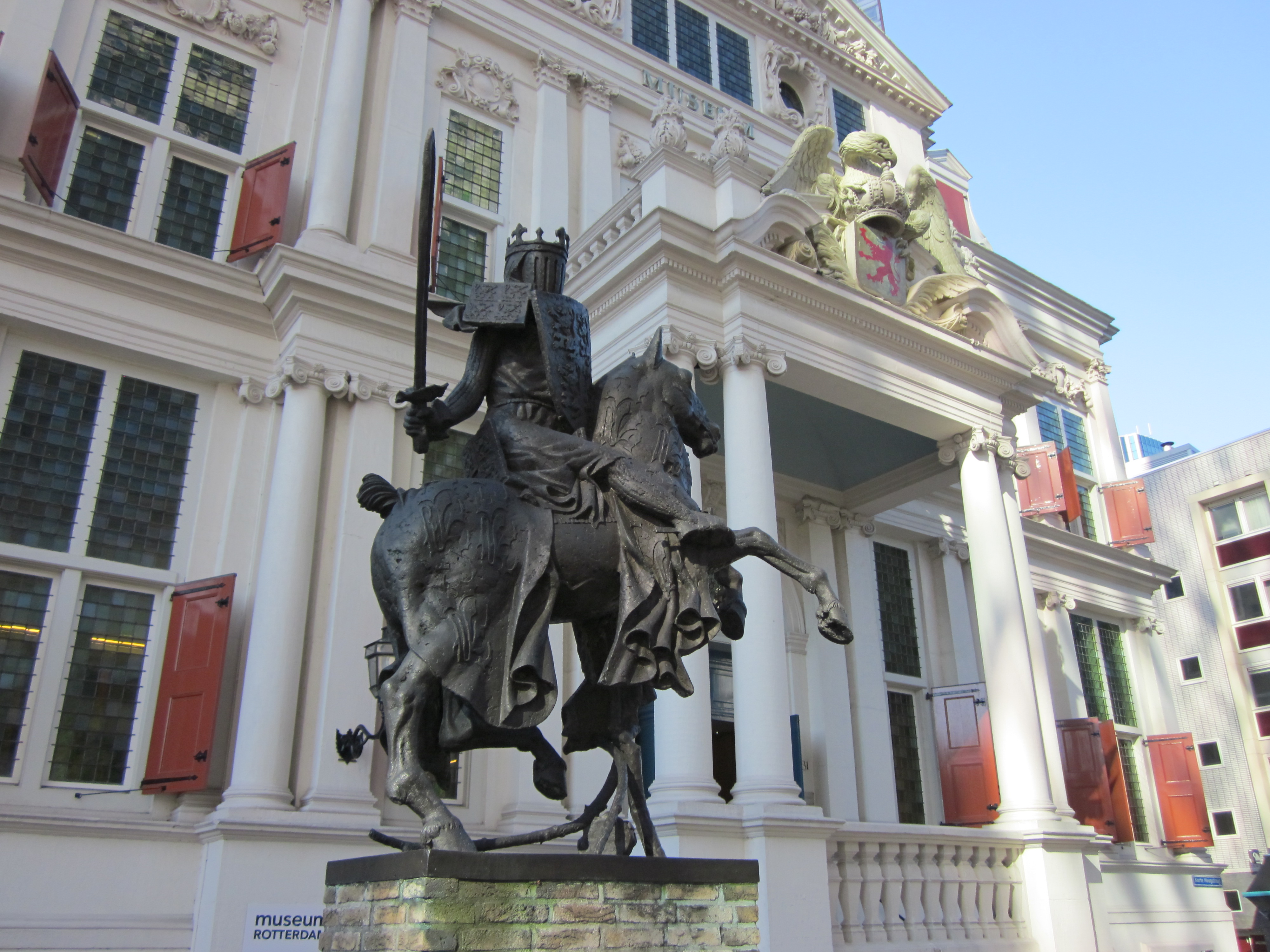 Rotterdam en geschiedenis: Standbeeld van Koning Willem IV voor de ingang van het Schielandhuis. De Graaf van Henegouwen verleende Rotterdam in 1340 stadsrechten (foto: René Hoeflaak)