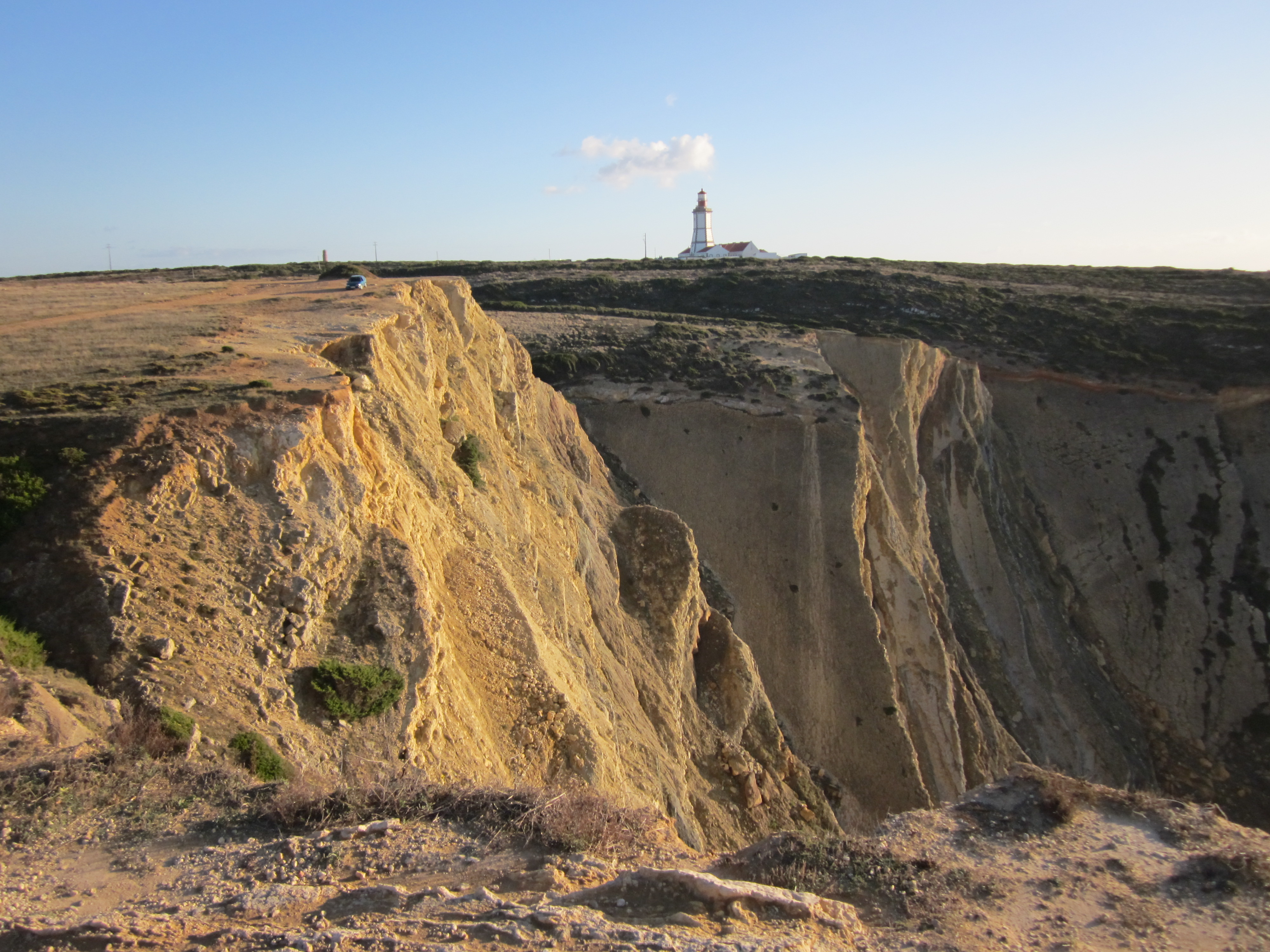 Alhoewel; Bij Cabo Espichel vonden archeologen in 1970 afdrukken van voetstappen van een dinosaurus. Waar rook is, is vuur. Dagelijks trekken vele pelgrims en toeristen naar het klooster en de kliffen. Er zijn festivals en concerten. Er zijn plannen om het klooster om te dopen tot een Pousada, de Portugese benaming voor een luxe Guesthouse op en in een historische plaats zoals een klooster of kerk. Intussen trekt de herfstwind steviger aan en wandel ik verder langs de rand van Portugal. Dankzij een mythe en met beide benen op de grond. Eigenlijk ben ik wel blij met mijn bril op sterkte.