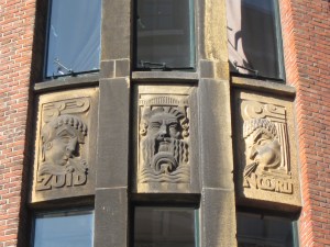 Uitgerekend in een weekend waarin de wind van richting verandert en de winter uit Nederland blaast, ontdek ik een Rotterdamse gevel met de afbeeldingen van vier gezichten, blazend naar elkaars windrichting.
