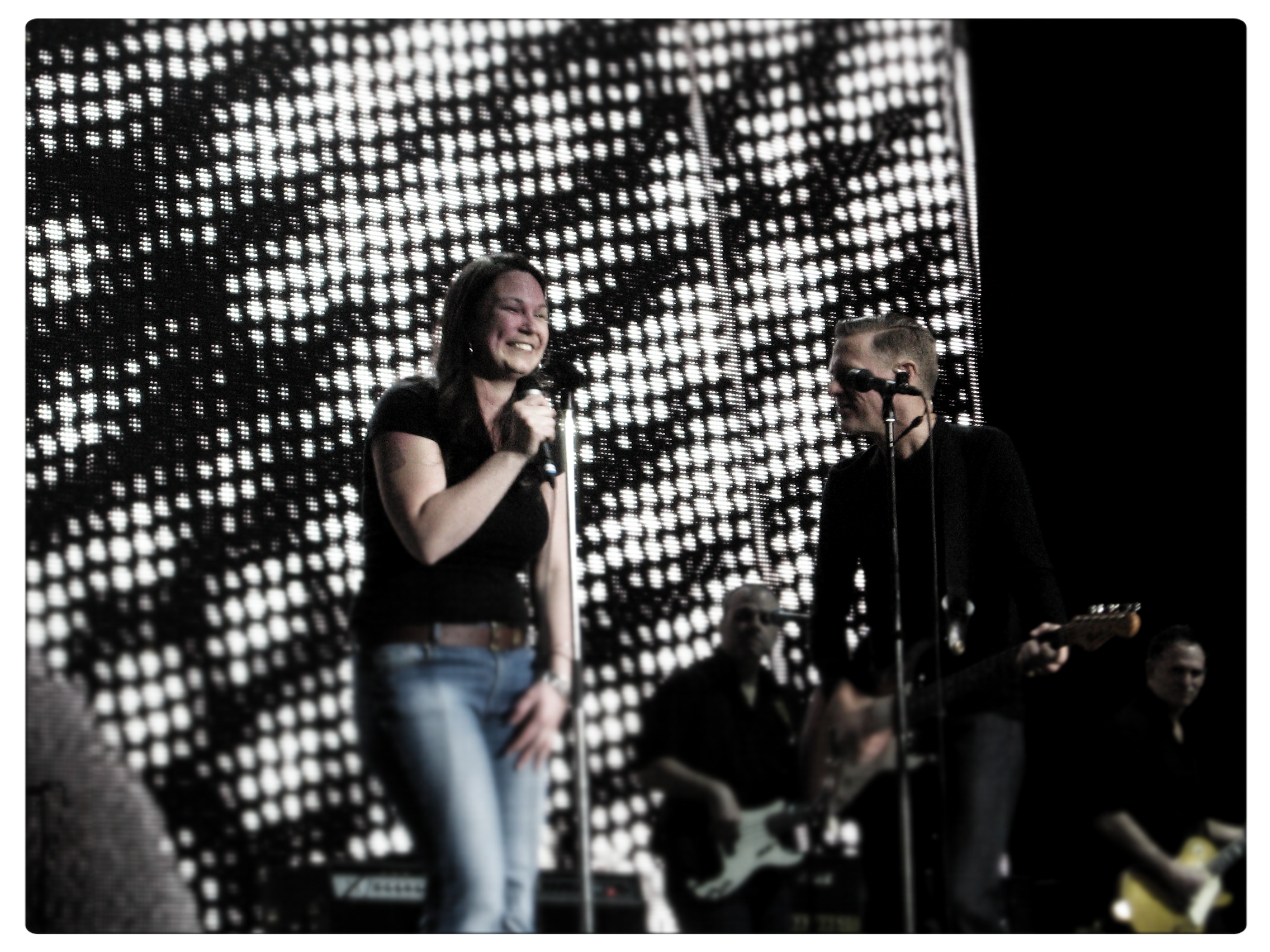 De setlist van het optreden van gisteren wijkt dan ook nauwelijks af van die van 2008 en naar alle waarschijnlijkheid ook die van 2016. Een standaard repertoire met louter nummers uit de vorige eeuw. Vergane glorie ligt op de loer. Maar wat is daar eigenlijk mis mee, vraag ik mij tijdens het optreden steeds weer af? Het repertoire van Bryan Adams kan het hebben. Want kom er maar eens om; Stellen van middelbare leeftijd vallen elkaar in de armen bij de mega hit “Everything I do” en vijftienduizend Nederlanders zingen zich schor en hebben een plezierige en zorgeloze avond. Een massaal “18 Till I die”gevoel. Want de altijd vrolijke en achttien gebleven vakman Bryan Adams toont ook in Rotterdam weer aan dat voorspelbaarheid en regelmaat fijn, prettig en goed is voor de geestelijke gezondheid. Het optreden is een feest der herkenning, een jukebox met optimistische Amerikaanse gitaarrock. En ook het camerawerk mag er zijn. Het zou zo maar kunnen dat de fotograaf Bryan Adams hier ook de hand in heeft gehad.