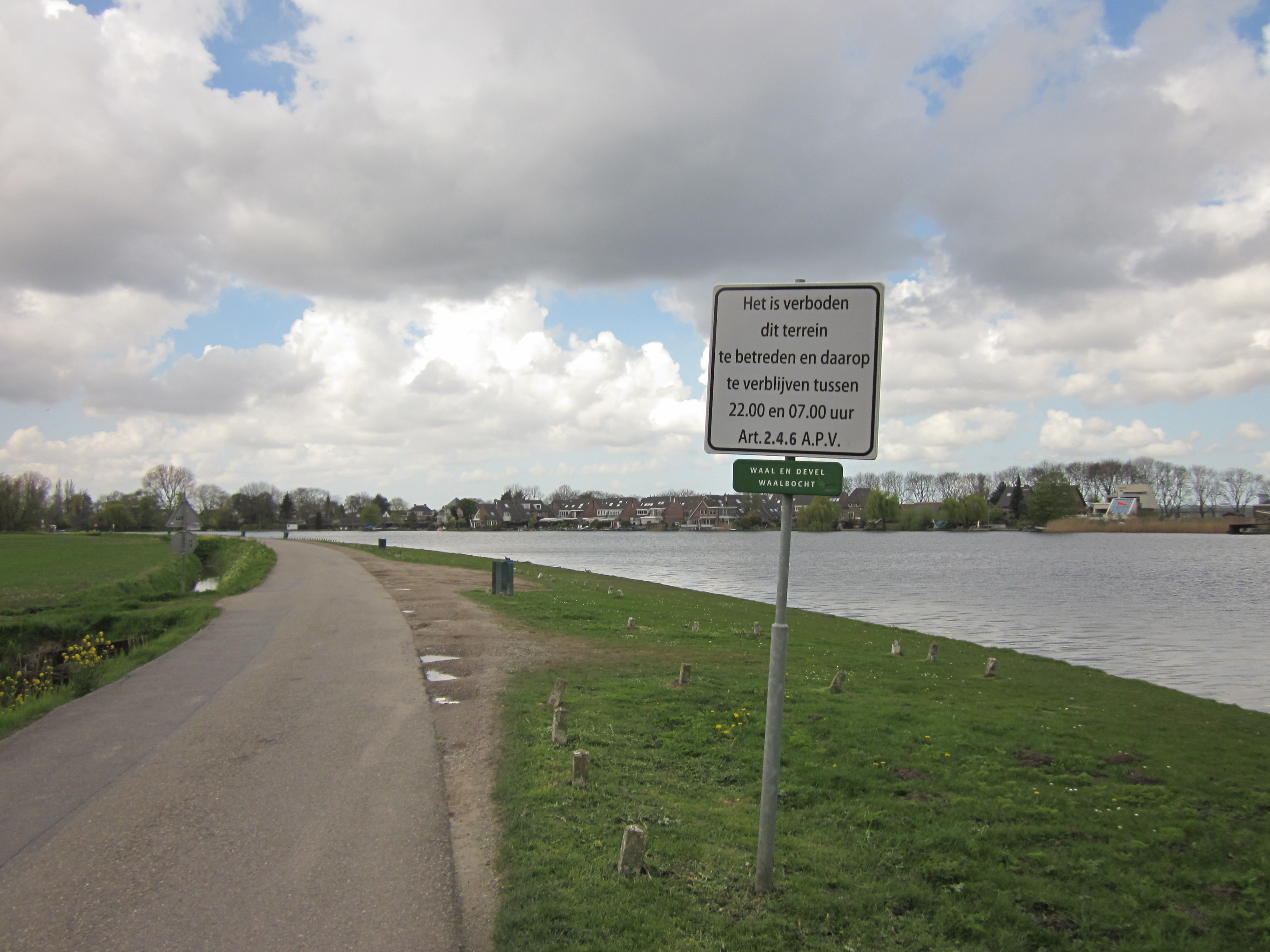 Aan de Waalweg komt maar geen einde. Hazen rechts, schapen links, dan schijnt de zon, dan hagelt het. Bij molen De Kersenboom uit 1822 hoor ik onweer. Vluchten kan niet meer, schuilen in geen geval. De lente is ver weg. Er is maar één weg terug, namelijk via de Waaldijk. Een historische omgeving. Want even later sta ik stil bij de Johannes Postschool. Op 15 mei 1940 tekende hier een verslagen generaal Winkelman namens Nederland de capitulatieovereenkomst met de Duitsers. Het Johannes Post Schoolmuseum is geopend op iedere eerste zaterdag van de maand. Op de Gebroken Meeldijk keer ik terug in Barendrecht. De Waal achter mij, het station voor mij. Dit keer neem ik de roltrap.