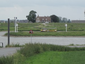 Ik wandel verder door de polder richting Oosterbeek. Nog geen 68 jaar geleden sneuvelden hier duizenden Britse en Poolse militairen tijdens de Slag om Arnhem. Op bordjes en monumenten langs de route lees ik over het slagveld. Ik passeer de Oosterbeekse kerk, het middelpunt van de strijd en het laatste steunpunt van de Britten. De kogelgaten zitten nog in de muur. Lijken en gewonden lagen bezaaid rondom de kerk en op de Benedendorpse weg. De weg gaat licht omhoog. En nu opletten…Want uitgerekend op deze weg vraagt een Duits echtpaar mij hoe lang de weg nog stijgt. Overdonderd en verbluft over de combinatie van het moment, de plek en de vraagstellers antwoord ik “Ich weiß es nicht“. Hoe is het mogelijk dat ik hier en nu mijn “Wo ist der Banhof” moment beleef.