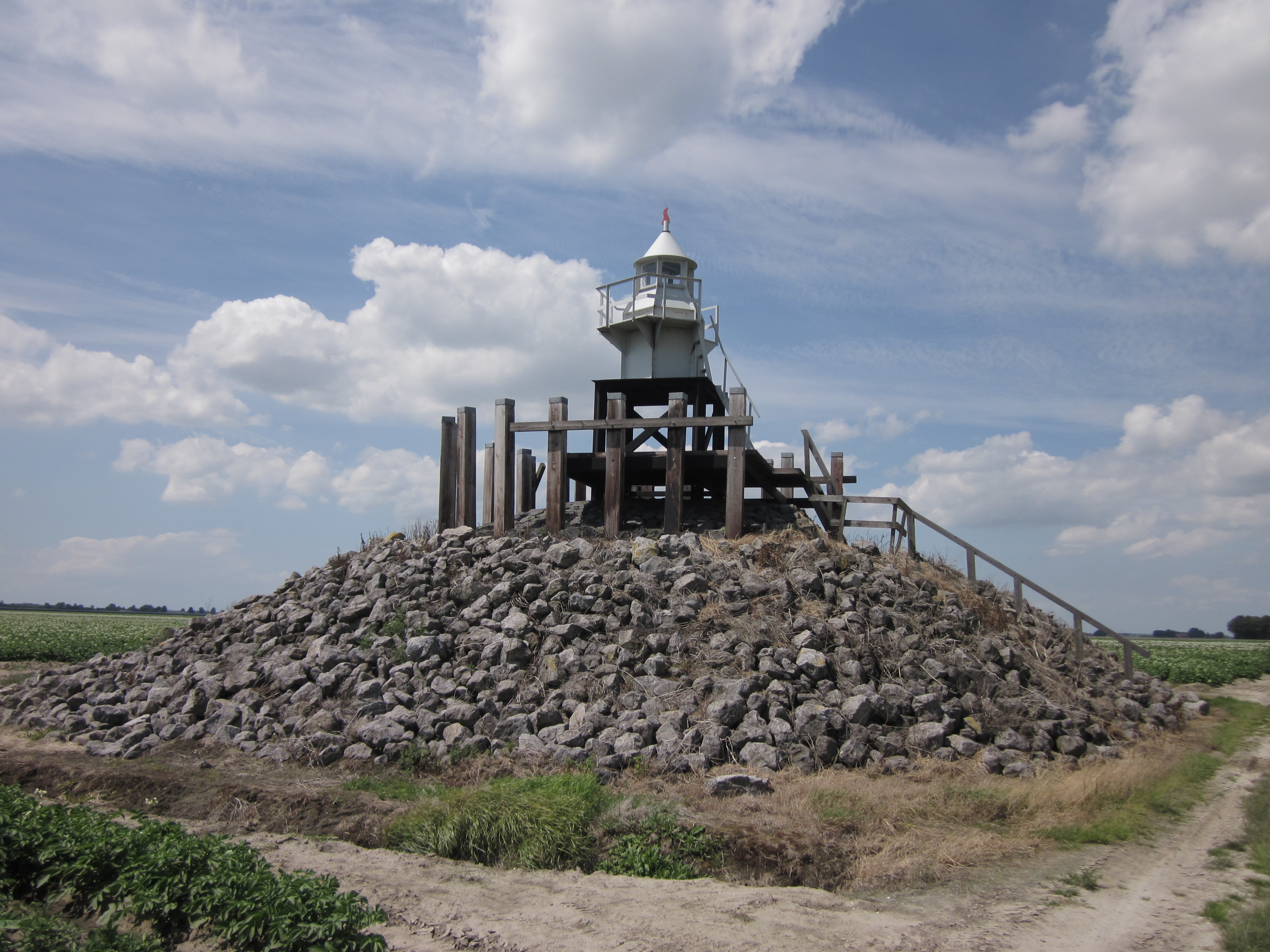 1 juli 2012: een karrespoorpad leidt naar de vuurtoren. Even later kijk ik van zeven meter hoogte uit over groene akkervelden. Geen kustlijn te zien. Laat staan water en zee. Zeventig jaar geleden, op 9 september 1942, viel de Noordoostpolder droog. Het Overijsselse Blokzijl verloor haar status als havenstad. Een havenstad die vanuit de ‘vroegere’ Zuiderzee voor grote schepen doorgaans alleen via een smalle vaargeul was te bereiken.
