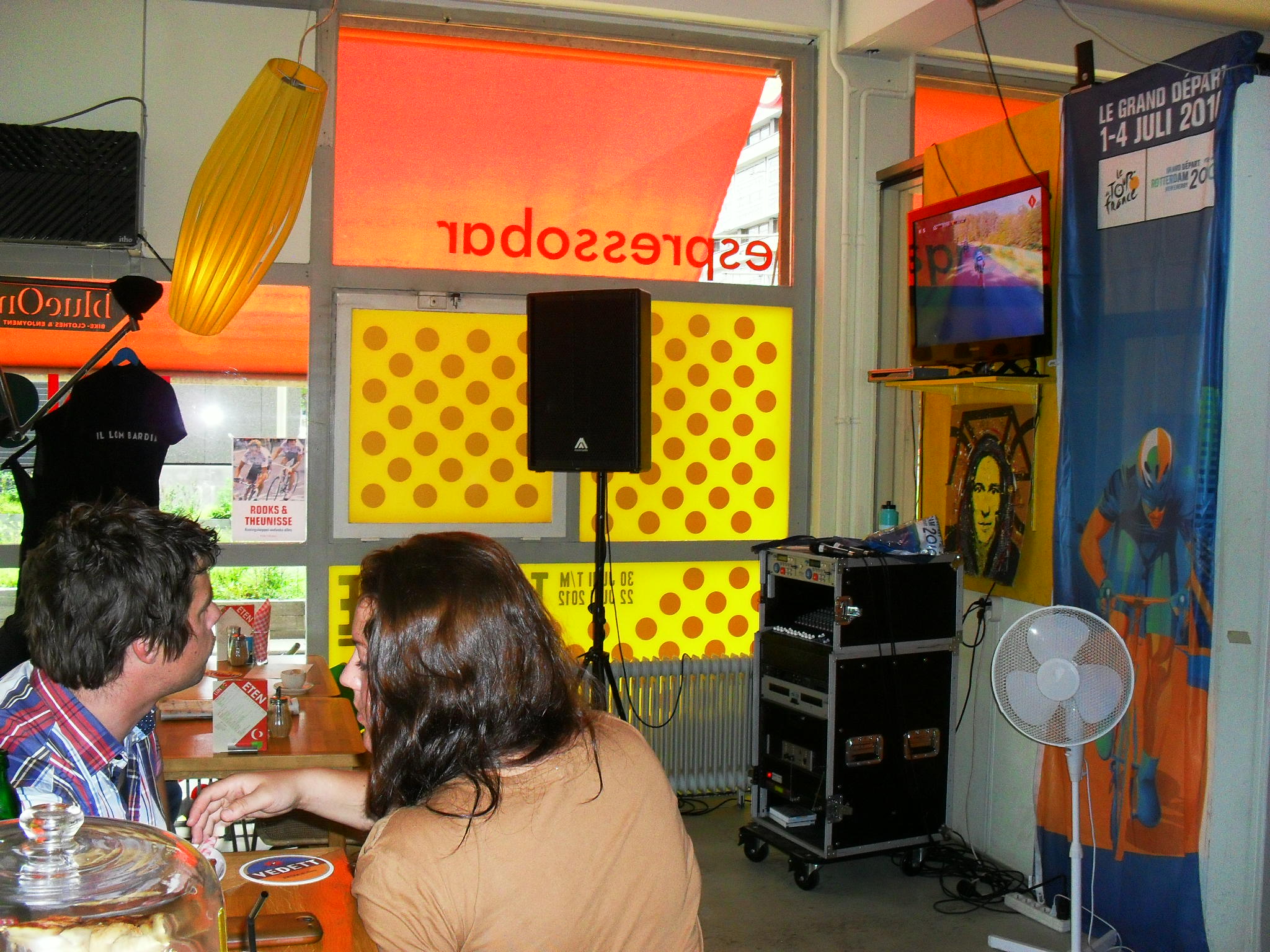 Onlangs schreef ik een post over het Tourcafé, om de hoek van het Centraal Station van Rotterdam. Woensdag sprak ik met een enthousiaste Oscar de Grave. Hij is één van de drie initiatiefnemers van het café. Samen met Oscar keek ik in espressobar Lungo, de thuisbasis van het café, naar het finishverslag van de bergetappe naar Bellegarde-sur-Valserine. Ondertussen spraken we over de passie voor het wielrennen en de toekomst van Rotterdam. Het woord is aan Oscar