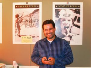 Oscar, hoe is het idee voor het Tourcafé ontstaan? “Edwin Bos, Peter Schuiten en ik zijn de initiatiefnemers, alledrie wielerliefhebbers en zelfstandig ondernemers. Al snel voelden we dat we iets wilden doen met wielrennen en het Rotterdamse stationskwartier, Rotterdam Central District. Levendigheid in dit gebied is heel belangrijk. Espressobar Lungo bleek de ideale plek voor het Tourcafé. Vlakbij het station, tussen de kantoren, midden in het stationskwartier. De mensen van Lungo waren direct enthousiast. Zij doen de catering, het eten en drinken, wij de programmering.”