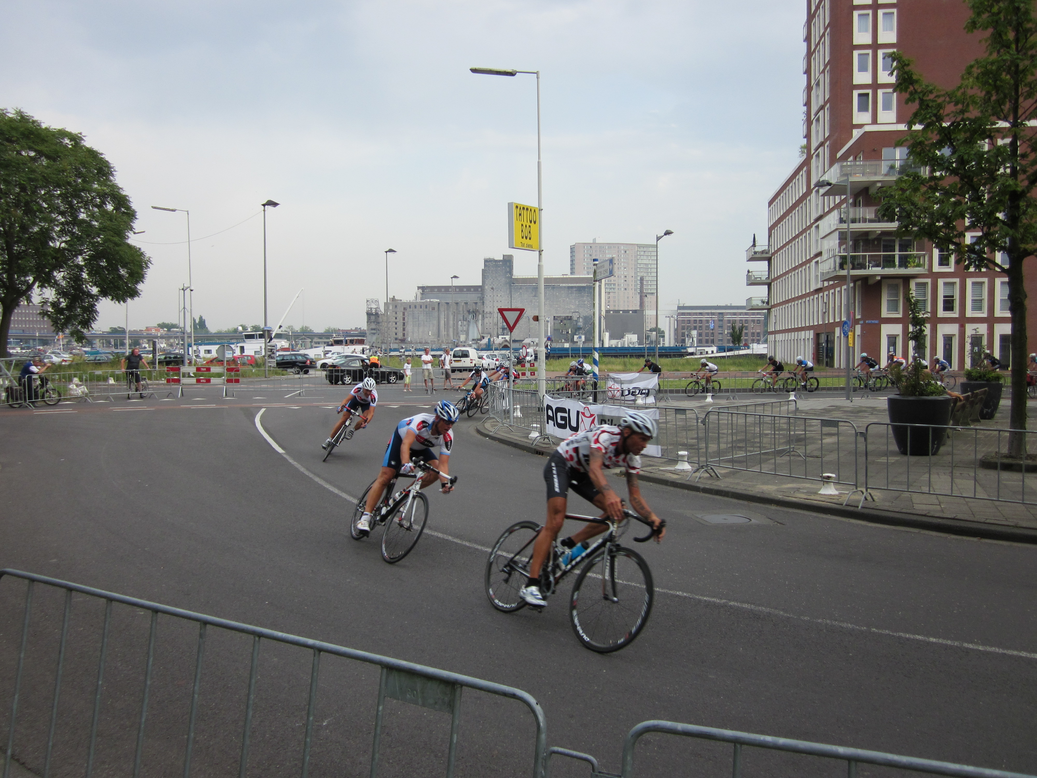 Rotterdam, vanmiddag; Gert Jan Theunisse aan kop in de Ronde van Katendrecht (foto: René Hoeflaak)