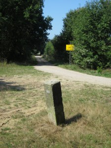 Grenspalen markeren de rand van het bos. Bij natuurgebied de Meerlehoek slaat de twijfel toe. Prikkeldraad rechts in plaats van links. Waar ben ik? In het land van Merkel of dat van Rutte? Van Löw of van Van Gaal? De schoonheid van de akkervelden en de graslanden kent geen grenzen. Net als deze dag. Het bevalt mij wel, de grenzen opzoeken.
