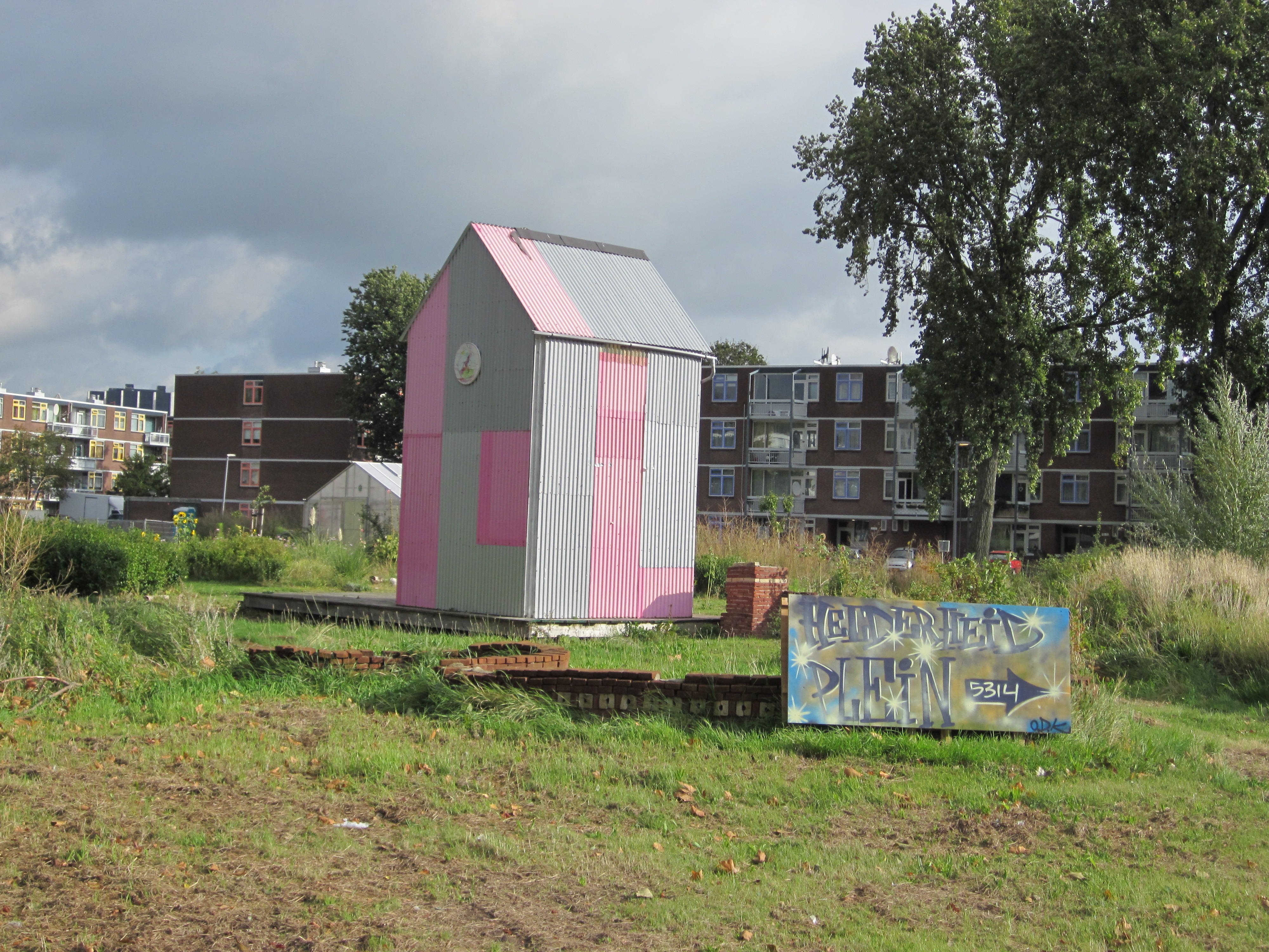 28 september 2012: Rotterdam, Helderheidplein, vernoemd naar de rapper Breyten Muskiet (1979-2004), bekend onder artiestennaam HELDERHEID ( Hoor Elke Les Die Een Reden Heeft En Ignoreer Dwaasheid). Het plein tussen de Piekstraat, Feijenoorddijk en de Zinkerweg is mobiel en flexibel ingericht, in afwachting van haar definitieve locatie. (foto: René Hoeflaak).