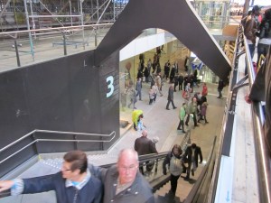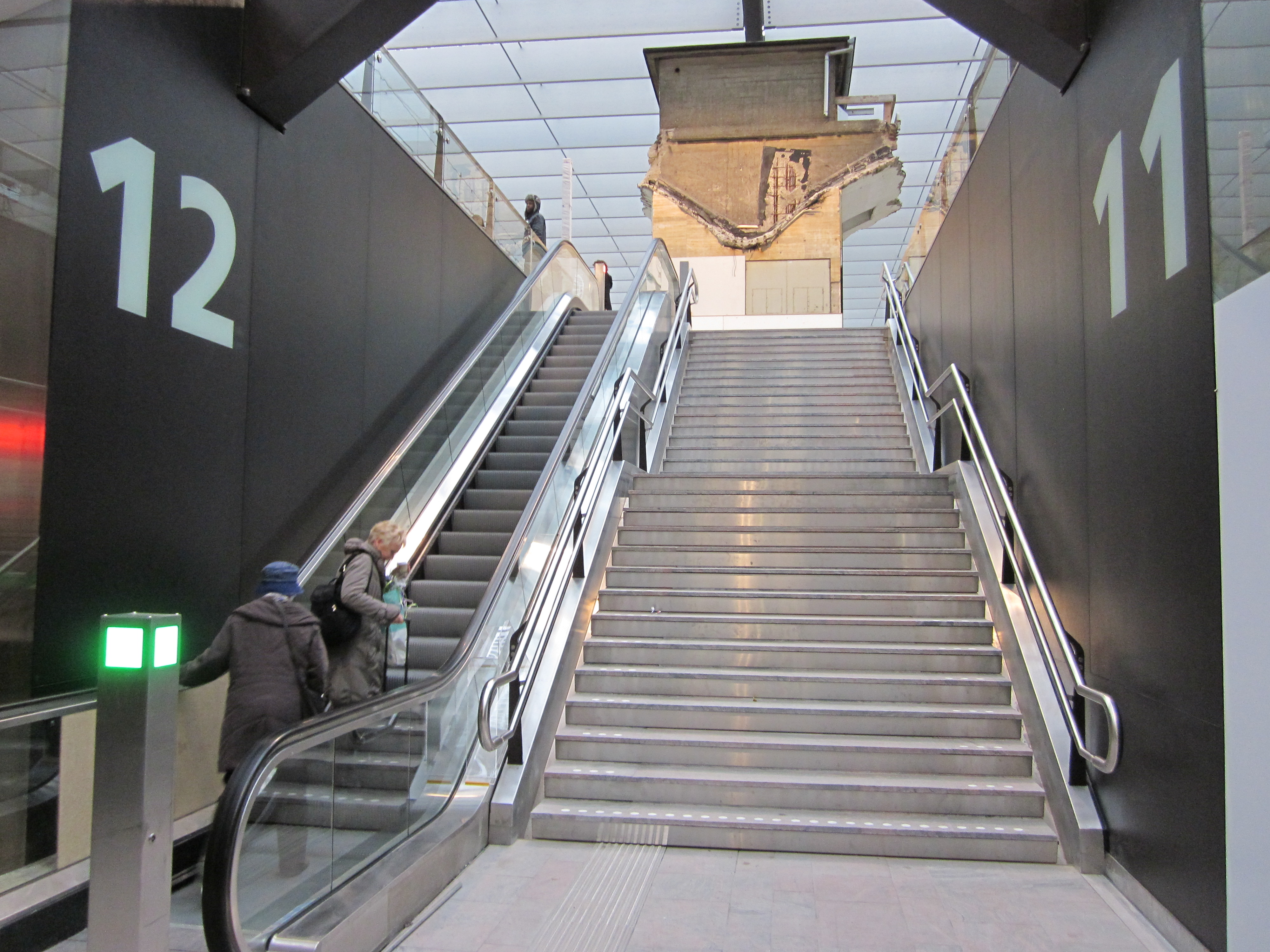 Rotterdam vanochtend; Nieuwe (rol)trappen en een oude lift, enkele uren na de opening van de reizigerspassage (foto: René Hoeflaak)