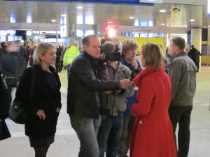 Rotterdam Centraal Station vanochtend: Wethouder Jeanette Baljeu staat de pers te woord (foto: René Hoeflaak)