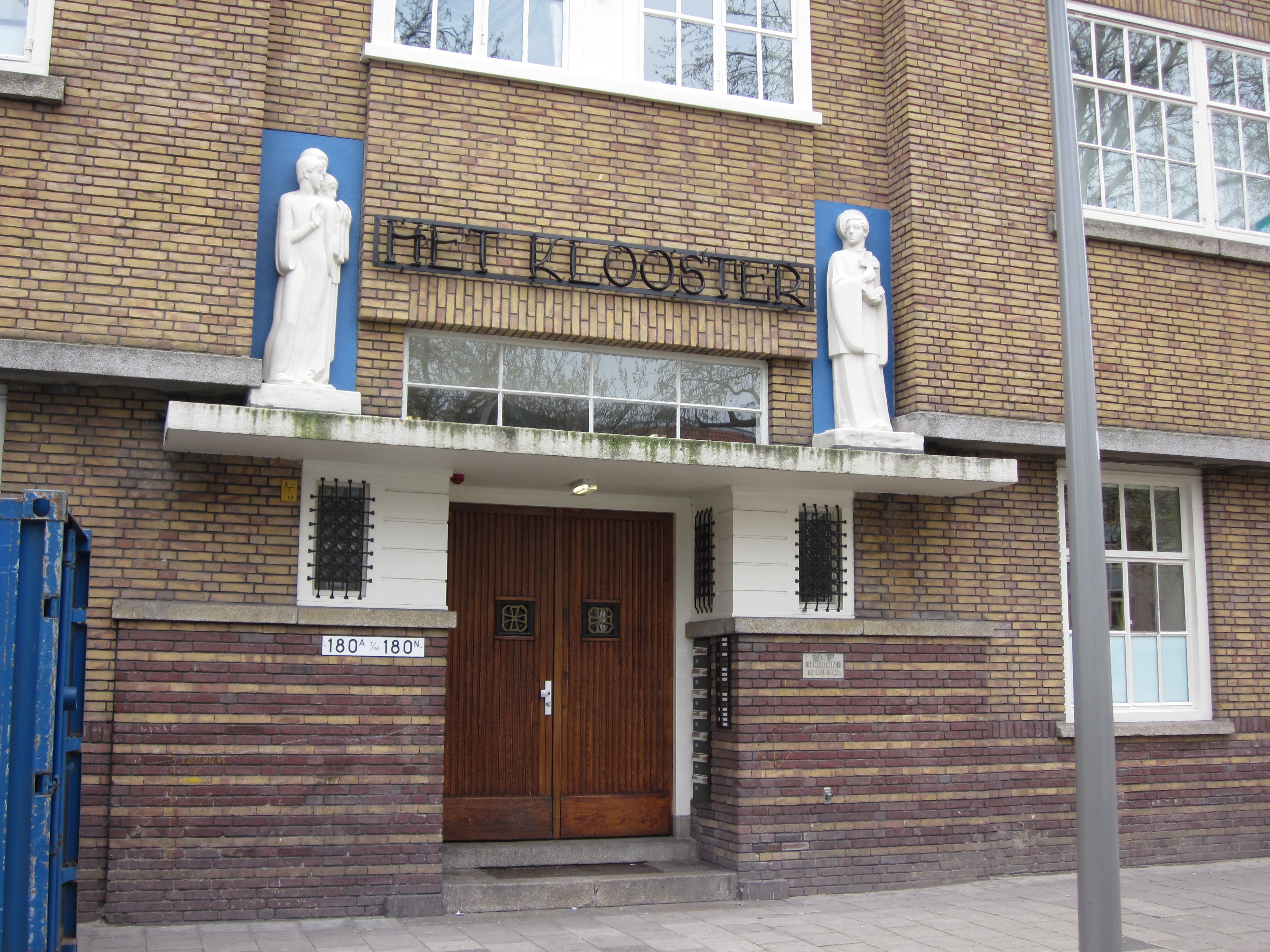 Vorig jaar zomer werd ik om toestemming gevraagd voor het gebruiken van een foto van mijn weblog voor de expositie ‘De St. Franciscus van Assisië Parochie (1902-1977), een katholiek Bolwerk aan het Afrikaanderplein’. Vorige week bezocht ik de expositie in LCC ’t Klooster aan het Afrikaanderplein en inderdaad… daar hing mijn foto. De foto betreft de pui van een woonproject voor begeleidend wonen aan de Putselaan. Niets katholiek aan, hoor ik u zeggen. Tot de jaren zeventig was dit echter het adres van het voormalige St. Louis Klooster Het klooster behoorde weliswaar niet tot de St. Fransiscus Parochie maar ‘de gebeurtenissen uit de Tweede Wereldoorlog zijn te ingrijpend om onvermeld te laten’ aldus de begeleidende tekst naast mijn foto aan de rode muur. Gebeurtenissen die ik twee jaar geleden afdeed in slechts vijf zinnen.